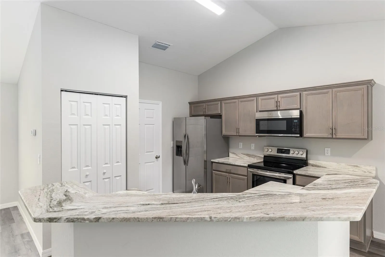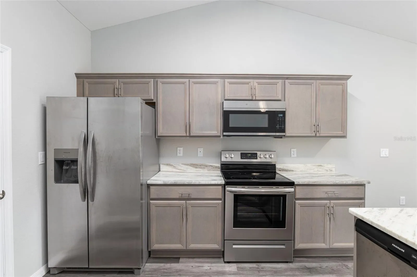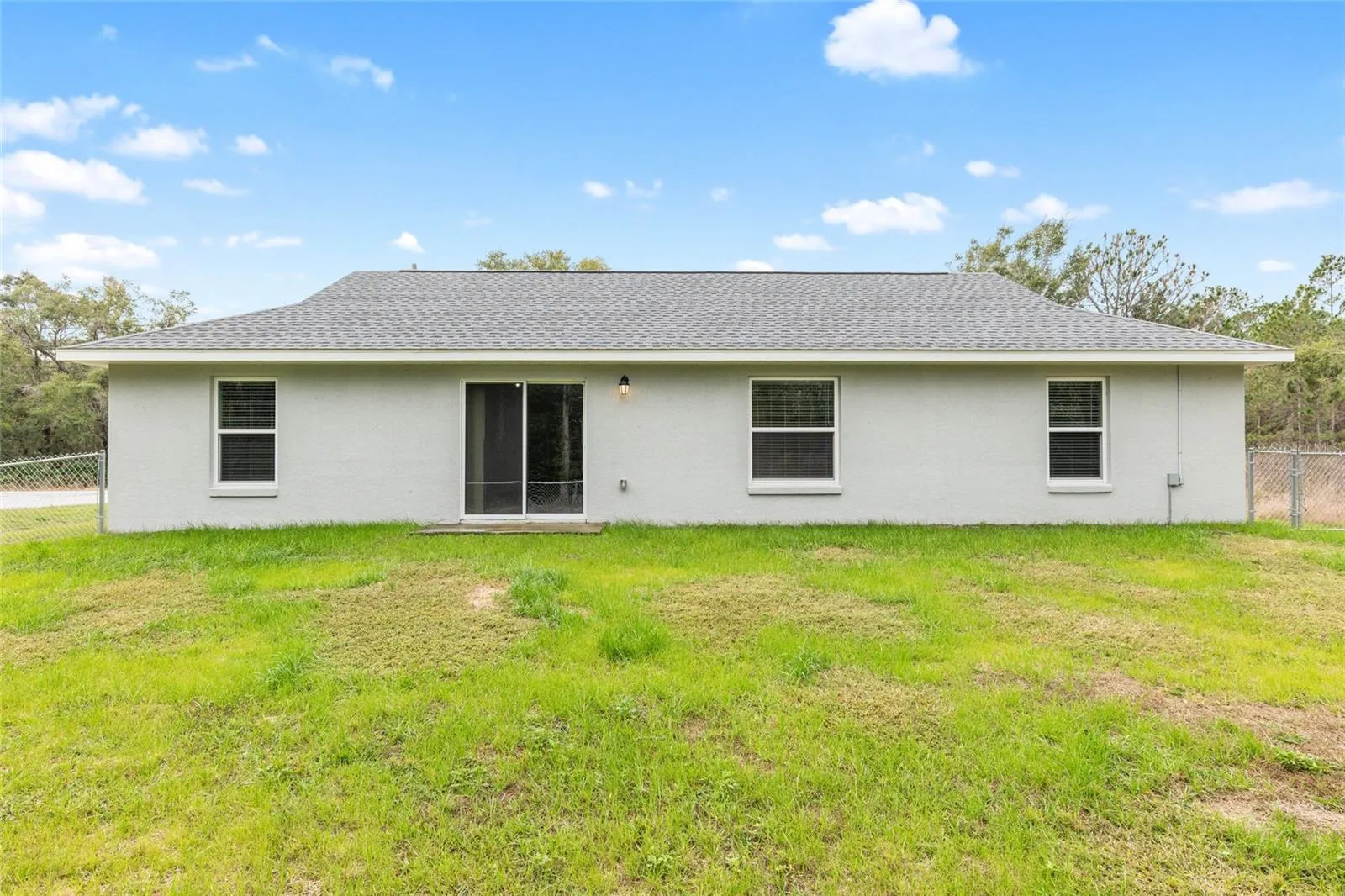 Don’t miss your opportunity to live in this beautiful 2023-built home! This concrete block and stucco home has 3 bedrooms and 2 full baths, a 2 car Garage and a split Bedroom floor plan built in 2023 on 0.26 Acres with a fenced in backyard on a CORNER LOT! Pet Friendly with some restrictions. 1,416 living sq ft & a total of 1,870 sq ft under roof in the established neighborhood of Silver Springs Shores. No Carpet, vinyl flooring throughout home with tile in the bathrooms. Open Concept kitchen with plenty of countertop space & kitchen cabinets. Real Wood upgraded soft close cabinet doors & drawers throughout with upgraded Crown molding on the cabinets. Includes a side by side refrigerator, overhead microwave, dishwasher, and range. Granite Countertops throughout. Open concept living room, Spacious bedrooms, sliding glass door that leads to a fully fenced in backyard. Nice dining area, newer custom blinds throughout. Very good size master bedroom with a large walk in closet. Linen closets in the hallway & guest bathroom. Inside laundry room off of the kitchen & garage. Property has well and septic. NO SMOKING. One pet allowed with some restrictions and cannot be on any dangerous breed list. $250 pet deposit, $250 pet fee, and $100 pet approval fee required. Serious inquiries only. $60.00 application fee for first adult and $40.00 application fee for every additional adult. Must show total household gross income of $5,535 per month. 1st, last, and security deposit required. $1,895×3 = $5,535. Must carry renter’s insurance for duration of the lease. Don’t miss your chance to see this property before it’s gone, schedule your showing today!