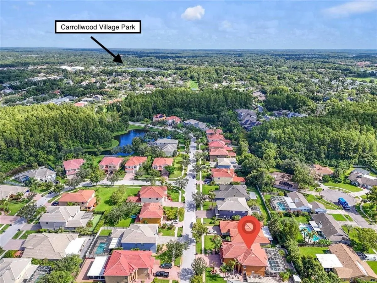 Welcome to 12835 Darby Ridge, a beautifully updated 5-bedroom, 3-bathroom home with a spacious bonus room, offering over 3,550 square feet in a sought-after Carrollwood location, where lush landscaping and a paver driveway welcome you home. A serene front koi pond and elegant tiered fountain create an inviting first impression. Inside, you’re welcomed by an elegant foyer with soaring ceilings and an angled staircase. Brazilian wood and ceramic tile floors flow throughout with no carpet, complemented by fresh 2025 interior paint, crown molding, and detailed trim work. The kitchen boasts custom cabinetry, granite countertops, stainless steel appliances, and two three-panel sliding glass doors—one in the kitchen and one in the living room—both opening to the pool area. Two spacious living areas are complemented by an open formal dining area and a casual dinette. The floor plan offers a first-floor bedroom and full bath with pool access. Upstairs, you’ll find three bedrooms, the spacious primary suite, and a bonus/media room wired for subwoofer and HDMI. The primary suite includes a large walk-in closet, soaking tub, and separate shower. All three bathrooms were remodeled in 2025 with stylish upgrades and beautiful tile work. The two upstairs baths each feature a double-sink vanity. Step outside to your private, screened backyard retreat, featuring a 30-foot heated PebbleTec pool and spa resurfaced in 2021 with a custom waterfall. The 2021 outdoor kitchen includes a Paradise Grill, built-in side burner, sink, and mini refrigerator. Additional features include custom seating near the outdoor kitchen, a second koi pond with a bonsai tree centerpiece, a paver patio, and low-maintenance landscaping. Recent updates include two new AC units (3-ton and 3.5-ton), a 2024 pool pump, and a 2023 water heater. For added convenience, the home offers an inside laundry room and a whole-home water softener. The three-car garage features a freshly painted floor, built-in cabinets, and a wash sink. Low HOA and no flood insurance required. Close to top-rated schools, shopping, dining, major highways, Carrollwood Village Park, and the Carrollwood Cultural Center. This home blends luxury, function, and the Florida lifestyle. Schedule your private showing today—this one will not last.