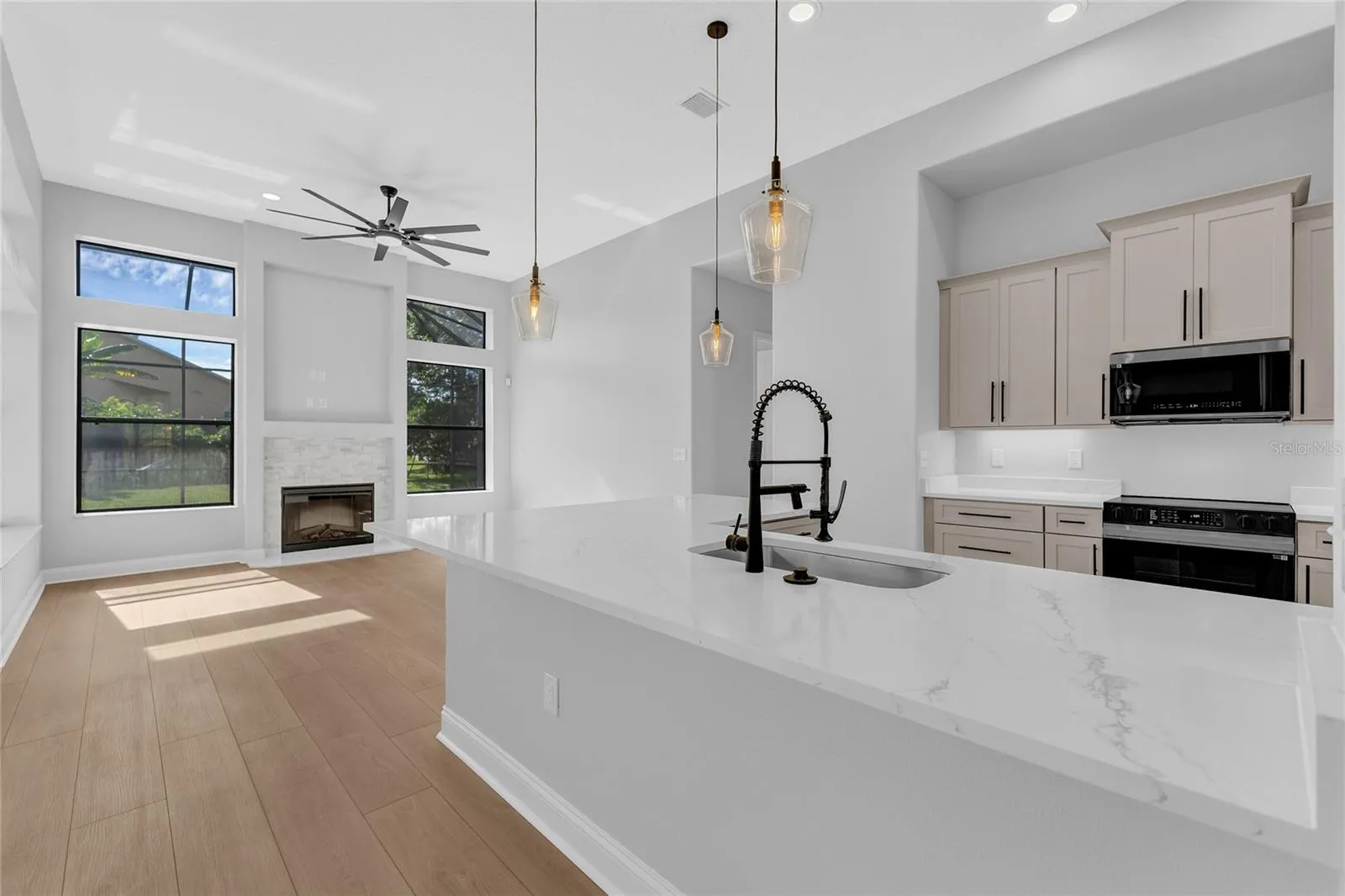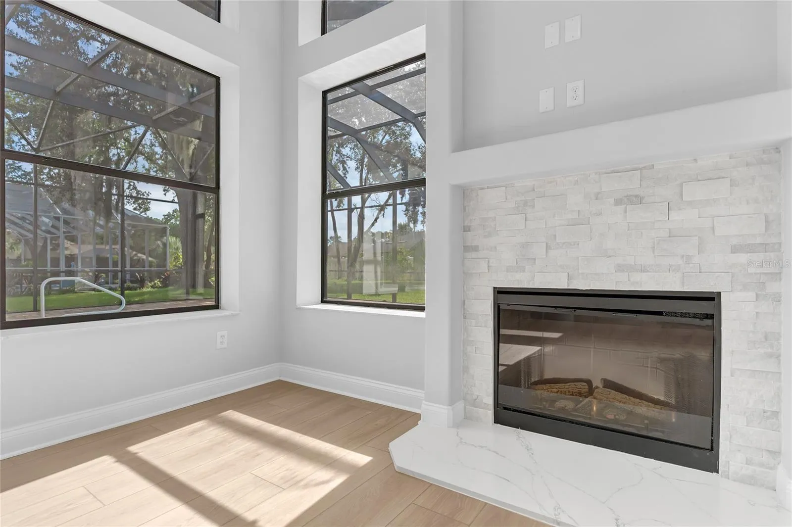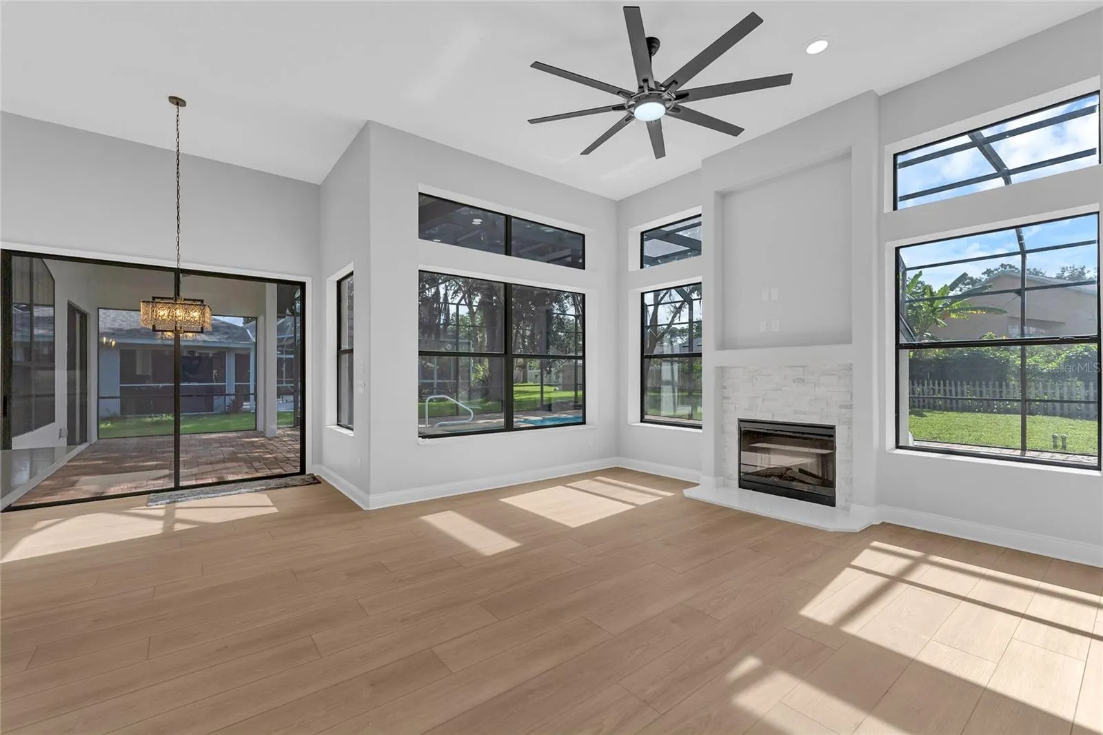 Stunningly Renovated Family Home in the Highly Sought-After Cypress Knolls Golf Community – No HOA! Welcome to this beautifully updated and generously sized family home, ideally located in the prestigious Cypress Knolls golf community with no HOA restrictions. From the moment you step inside, you will be impressed by the grand entrance, soaring ceilings, and an abundance of natural light that fills the space through oversized windows, creating a bright and airy atmosphere. At the front of the home, the formal living and dining rooms offer a refined setting for entertaining and special gatherings. The heart of the home features a modern, fully renovated kitchen with solid wood cabinetry, sleek quartz countertops, stainless steel appliances, and a cozy dinette area. The adjacent family room is both warm and inviting, anchored by a stunning stone fireplace and large windows framing serene views of the backyard and pool. Designed with privacy in mind, the thoughtful split floor plan places the luxurious primary suite on one side of the home. This tranquil retreat boasts a tray ceiling, sliding doors that open to the pool area, and a fully renovated spa-like en-suite bath complete with a freestanding soaking tub, oversized walk-in shower, dual vanities, private water closet, and his-and-hers walk-in closets. On the opposite side, three additional bedrooms and a stylishly updated full bathroom provide comfortable accommodations for family or guests. Upstairs, a private guest suite with its own full bath is perfect for visiting family or an in-law arrangement. A separate staircase leads to a spacious loft or bonus room with its own private bathroom, ideal as a media room, home office, gym, or even an additional guest suite. The outdoor living space is just as impressive, featuring a large covered lanai perfect for entertaining or enjoying quiet evenings. The enclosed pool and spa area has been freshly resurfaced and re-grouted, with a newly rescreened enclosure ready for you to enjoy the best of Florida living year-round. Extensively renovated in 2025, this home includes a brand-new roof, two new HVAC systems (one for each floor), fully remodeled bathrooms, upgraded plumbing and electrical fixtures, luxury vinyl plank flooring throughout the first floor, high-quality carpet upstairs, fresh paint inside and out, updated landscaping, and a new exterior door to the pool bath. The kitchen and bathroom vanities are all outfitted with solid wood cabinetry and finished with quartz stone countertops. Even the fireplace has been updated with a beautiful new stone surround. This spacious, move-in-ready home offers style, comfort, and flexibility to suit any lifestyle. Don’t miss this rare opportunity—schedule your private showing today before it’s gone!