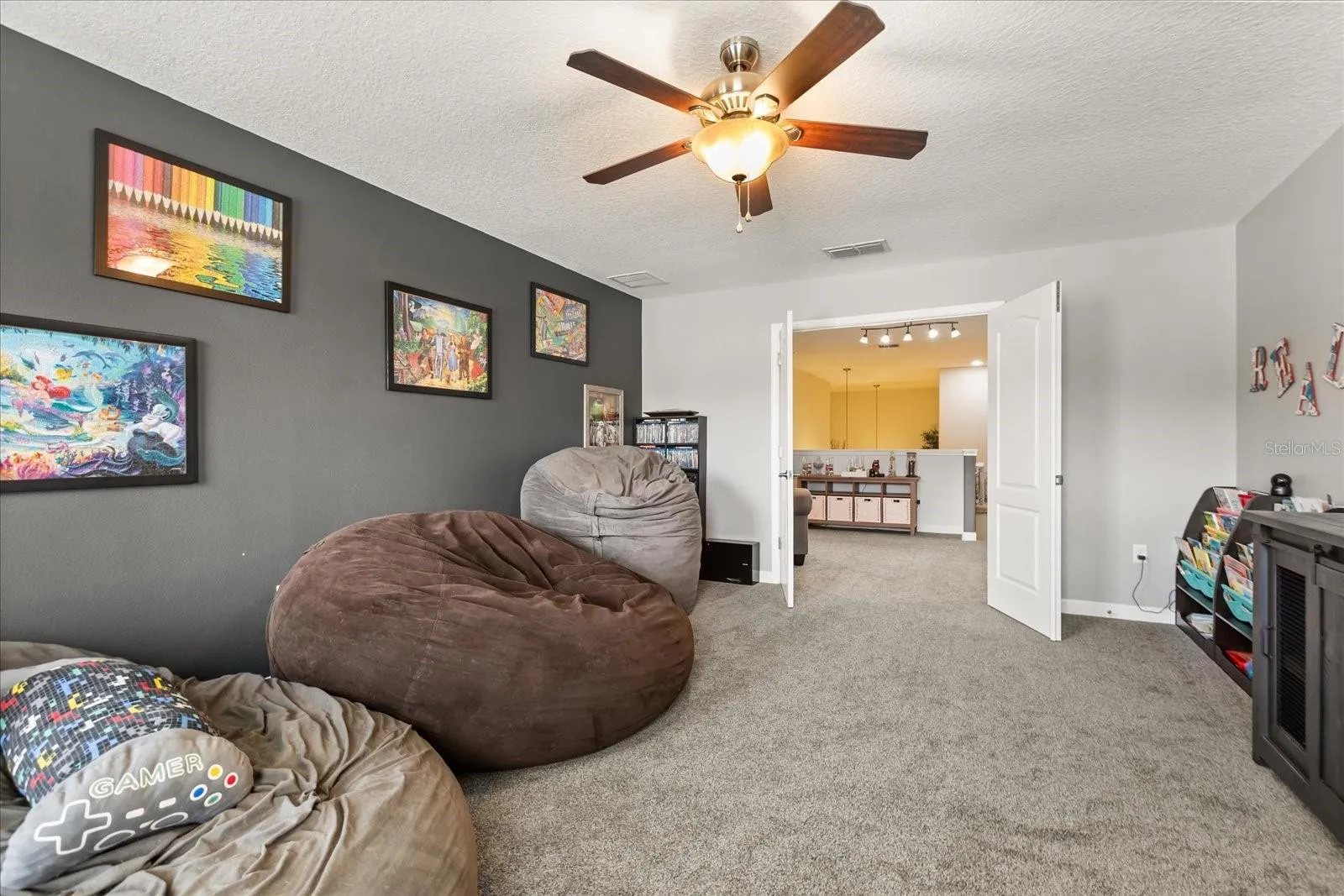 Additional highlights include a laundry room with built-in shelving, ceiling fans in all bedrooms, a versatile upstairs loft with bonus room, and recent updates such as a 2024 80 GAL ENERGY EFFICIENT WATER HEATER, 2023 ROOF, and 2021 HVAC with dehumidifier. This home is also energy efficient with 58 HERs Rating. Outside, enjoy a fully fenced yard with a playground set on rubber mulch, a paved 30×12 extension in backyard poured 6 inches deep—ready for future builds and a grilling gazebo perfect for entertaining. The 3-car tandem garage includes garage shelving, and a new opener.