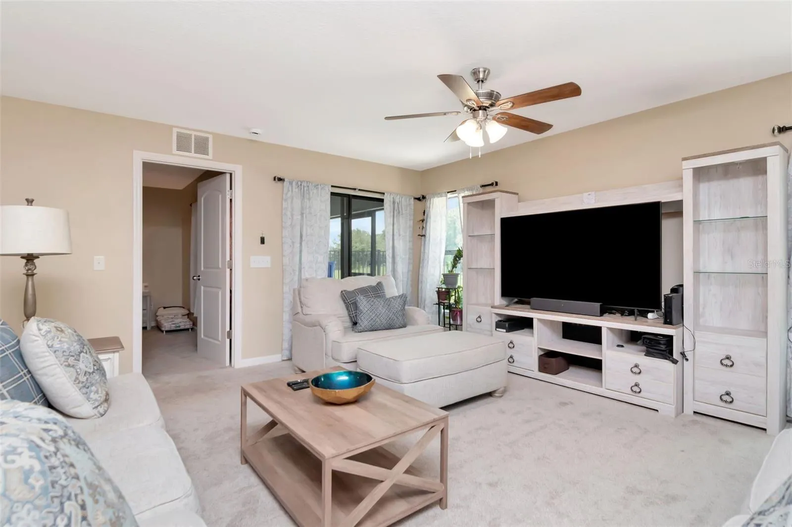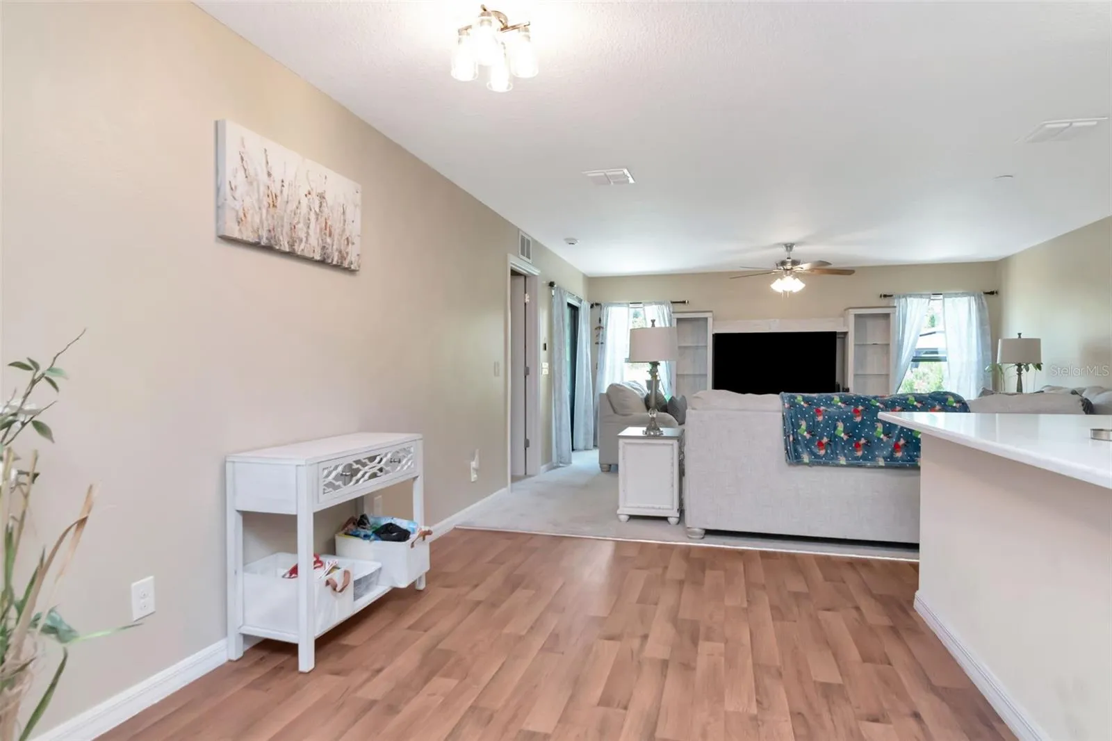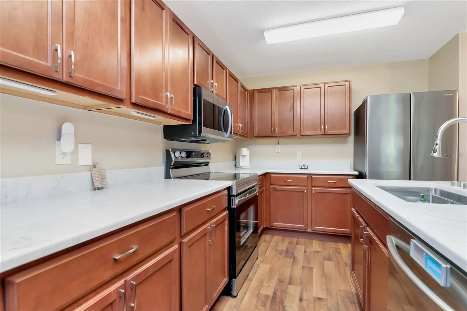 Welcome to your dream home in a serene lakefront community! This beautifully updated residence offers a perfect blend of comfort and style, featuring an open-concept layout ideal for entertaining. The spacious kitchen boasts stainless steel appliances, a large island with ample counter space, and seamless flow into the living area. Enjoy privacy in the generously sized master suite, complete with a walk-in closet and a luxurious en-suite bathroom featuring dual vanities and a walk-in shower. The split-bedroom design ensures quiet separation, with two additional bedrooms conveniently located near a full hall bath. Step outside to your screened-in lanai overlooking peaceful woodlands—no rear neighbors means uninterrupted tranquility. Recent upgrades include solid surface countertops, new Samsung appliances, and fresh interior paint, making this home truly move-in ready. Located in a vibrant community with resort-style amenities including a clubhouse, tennis courts, and sparkling swimming pools, this home is a must-see. Schedule your private tour today and experience all that this exceptional property and neighborhood have to offer!