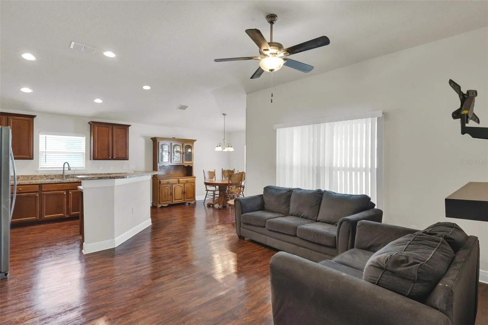 3/2 with kitchen open to the living room, inside laundry, split plan, with vaulted ceilings. Kitchen with breakfast bar, 36″ tall upper kitchen cabinets with crown molding, GE appliances, and more. Master suite has attached bathroom with dual sinks, 4 foot walk-in shower, Garden Tub and walk-in closet. Living room has vaulted ceilings and is open from the kitchen, perfect for entertaining. Easy access to major roads and to downtown Mount Dora. Don’t miss the opportunity to live in this serene location.