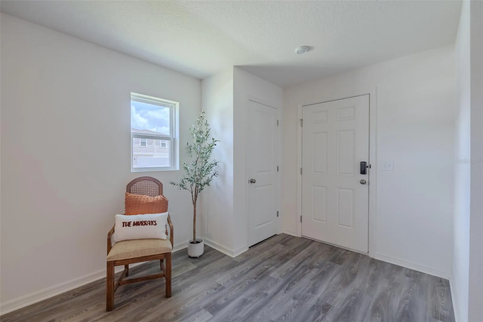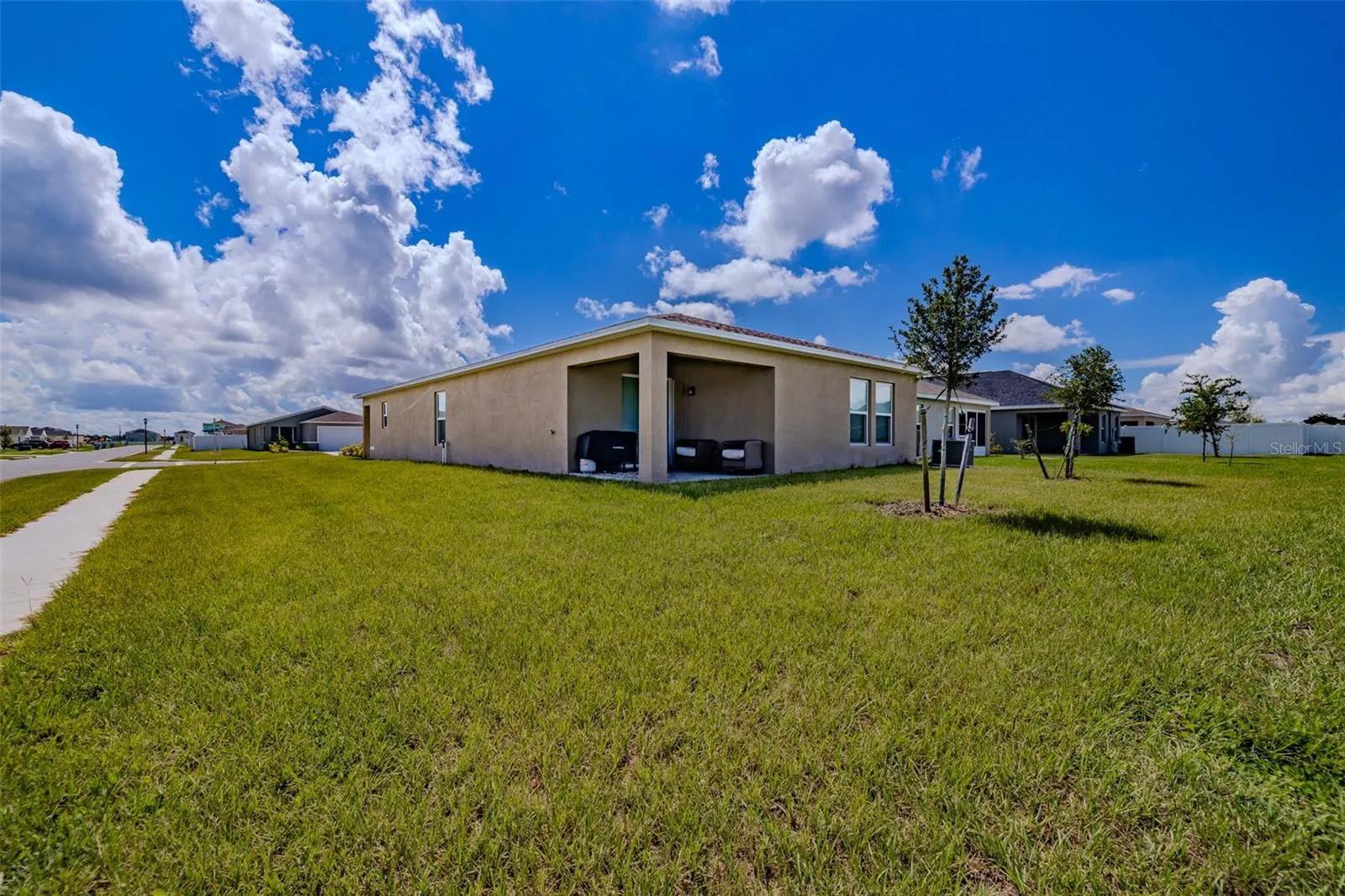 If you’re looking for new construction, but don’t want to wait on the builder, this home is move in ready! Welcome to the Eagle Hammock community. This 3 bedroom, 2 bath home with a 2 car garage offers an open floor plan. Off of the living room are 2 bedrooms and guest bathroom. The kitchen features granite countertops, a walk in pantry, stainless steel appliances and a sliding door to the back covered patio. The oversized laundry room is right off the kitchen, across from the primary bedroom. The primary en-suite includes a walk-in closet, double vanity and walk in shower. In the flower beds near the front door, there is a Hunter sprinkler system/misters. Don’t wait, this home won’t last long!
