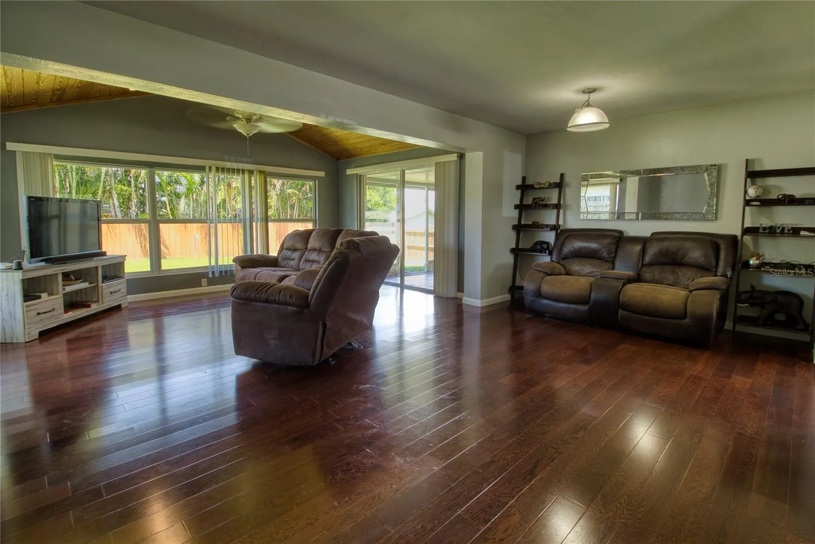 The updated kitchen boasts granite counters, stainless appliances, soft-close cabinets, and a reverse osmosis system. The family room brings in natural light with large windows and sliders leading to a screened lanai. The fenced backyard includes a shed, and room for a pool. Both bedrooms are spacious with ample storage. Close to beaches, shopping, dining, and hospitals.