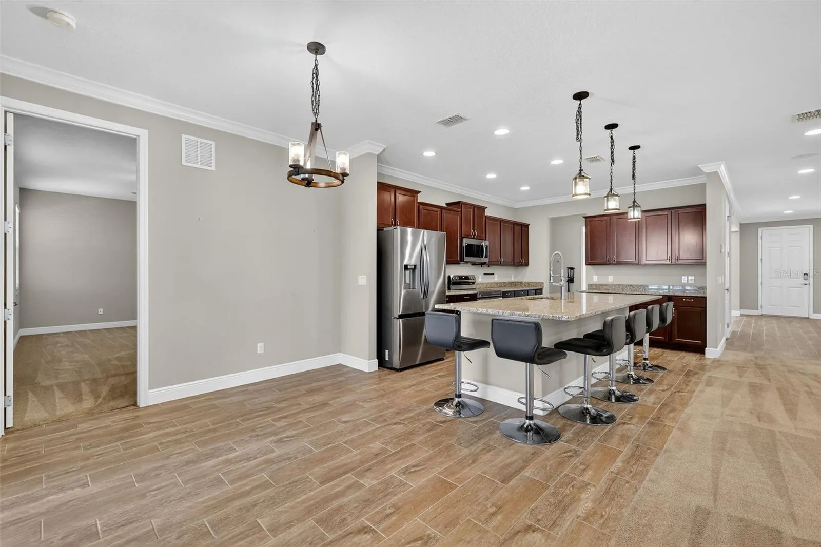The spacious kitchen flows seamlessly into the family room, making it ideal for entertaining, while the formal living and dining room add an elegant touch for special gatherings.