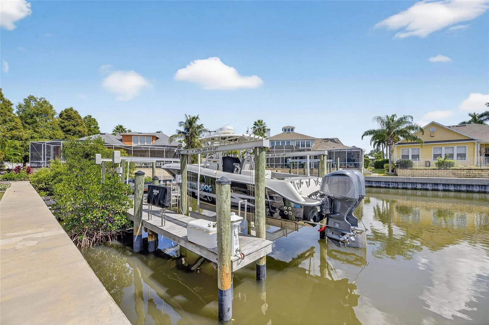 Welcome to your dream coastal retreat! This beautifully updated one-story waterfront home blends modern luxury with the relaxed Florida lifestyle. Featuring a 10,000 lb boat lift, you can set sail right from your own backyard and be out on the open water in minutes. A comprehensive remodel completed in 2021, paired with a new roof installed in late 2019, means all the major work has already been done. The chef’s kitchen is a showstopper with updated cabinets, sleek countertops, premium appliances, and reverse osmosis drinking water at the sink. Both bathrooms have been completely remodeled, including a spacious master bath with an upgraded 8-foot glass shower door. Throughout the home, you’ll find new in 2021 flooring, baseboards, interior doors, LED lighting, blinds, and fresh interior and exterior paint. The primary suite includes a redesigned custom closet, and the kids’ closet has also been upgraded for extra functionality. Outside, enjoy new pavers on the front and back porches, lush front landscaping, and low-maintenance backyard turf that’s perfect for year-round enjoyment. Additional highlights include a new Goodman A/C (installed August 2025), whole-home water softener, and a smart security system. Every inch of this home has been thoughtfully updated to offer both style and comfort. Move right in and start living the waterfront lifestyle you’ve been dreaming of!