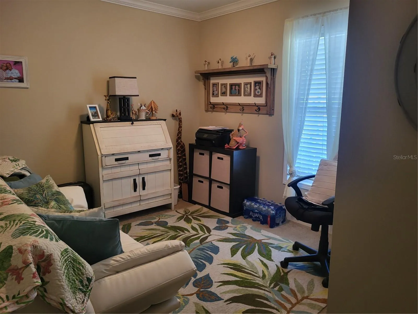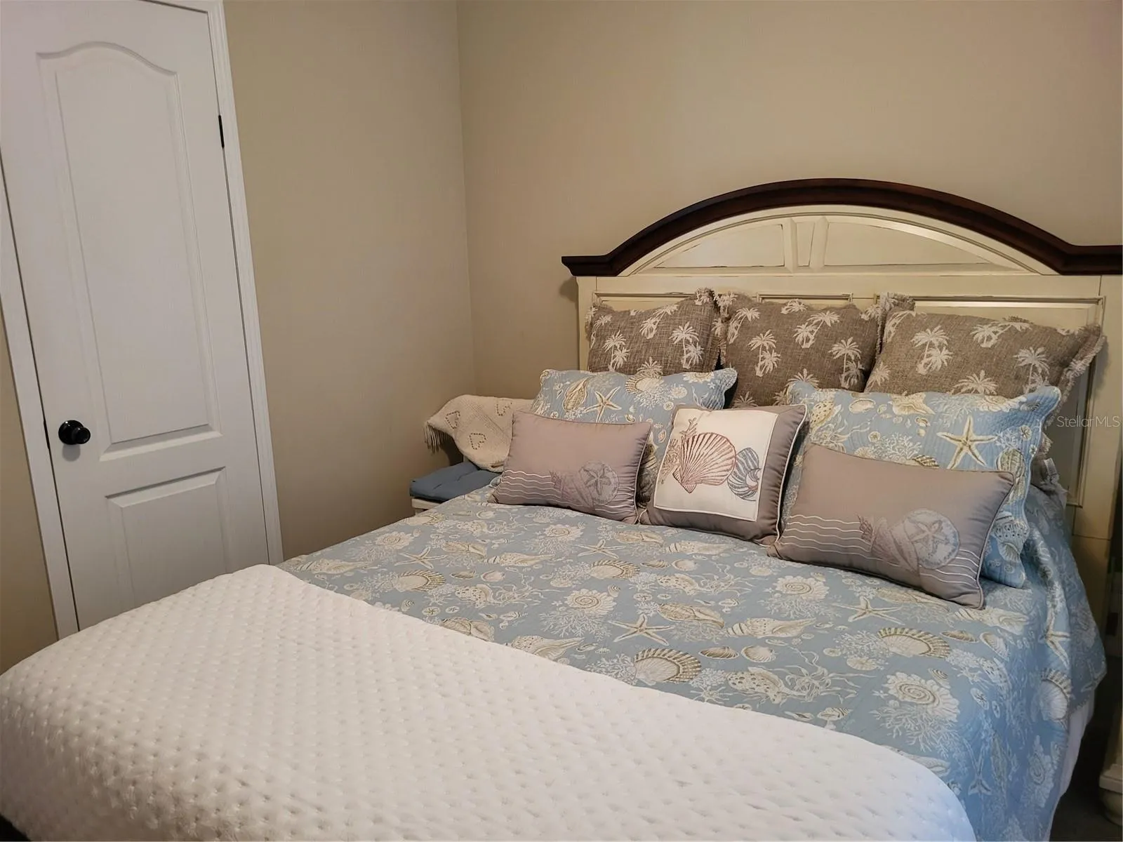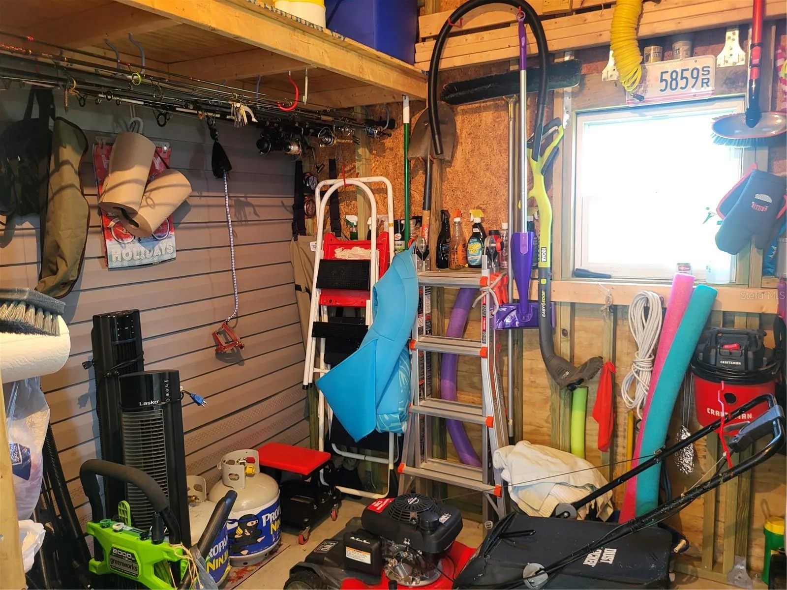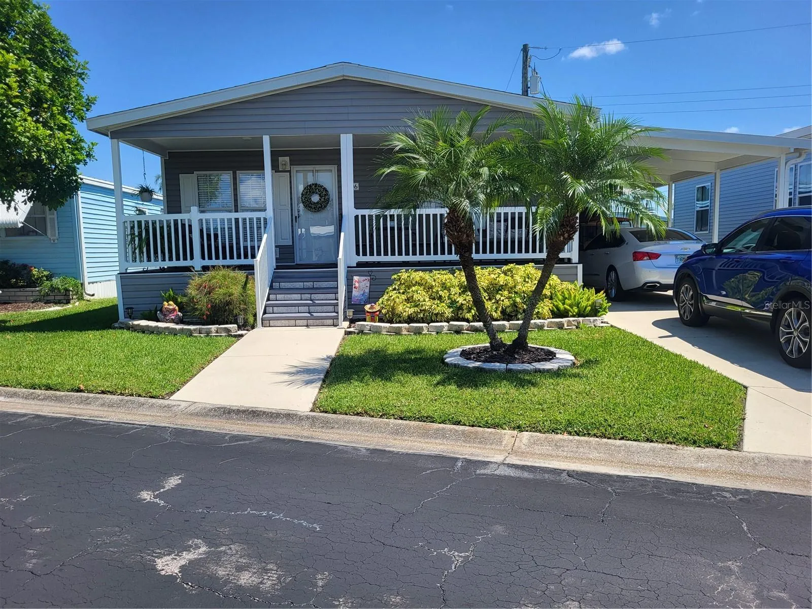 Welcome home! This beautiful 3/2 with carport, screened lanai and an oversized storage bldg for all the extras. As you enter the well-appointed living area you will appreciate the appealing furnishings. The open concept is exquisite yet cozy. The primary bedroom has a walk-in closet with an in-suite bathroom complete with garden tub, walk in shower and double vanity. A large laundry room off the hallway for your convenience. Two roomy bedrooms and an extra full bathroom. The screened lanai is perfect for relaxing and a cookout. The key west style covered front porch is a great place to sip a cool drink. The home boast hurricane windows which open out for easy cleaning, newer Trane hvac unit. The community is nestled in a country like setting with 2 swimming pools, 2 clubhouses, pickleball courts, shuffleboard, bocce ball, pool tables and many social activities. The vast park with magnificent shade trees has dog park area and a communal area for socializing and an occasional gathering. If you are in search of an exceptional home, look no more.