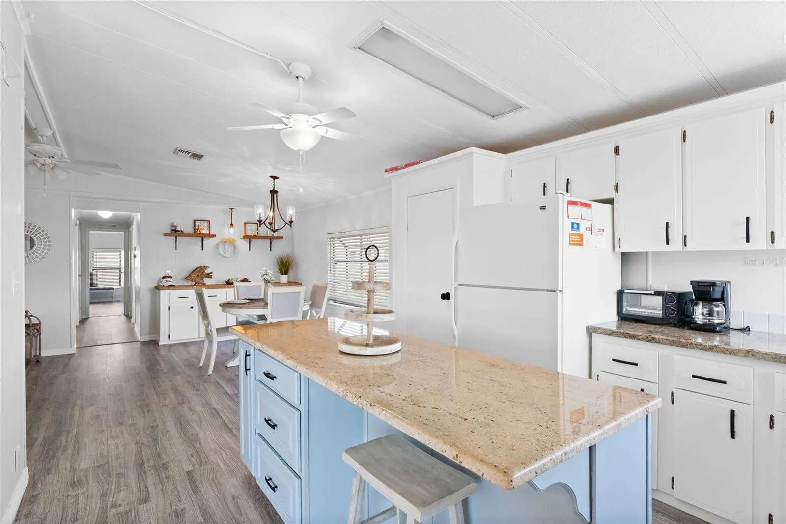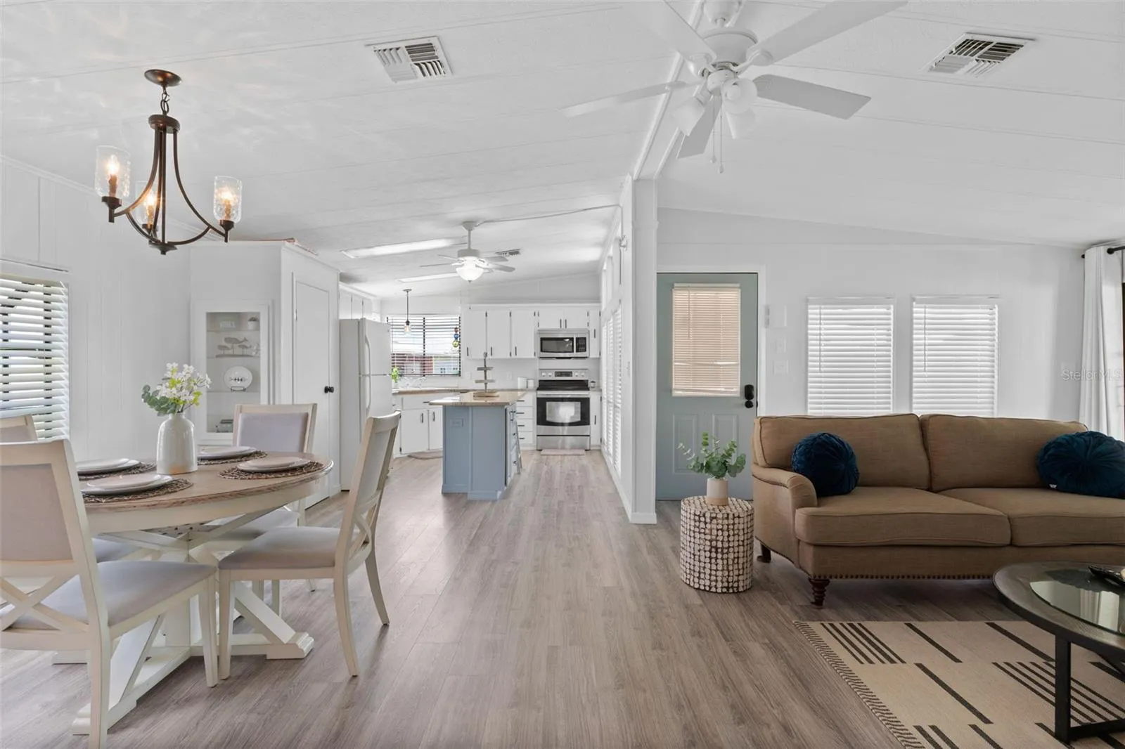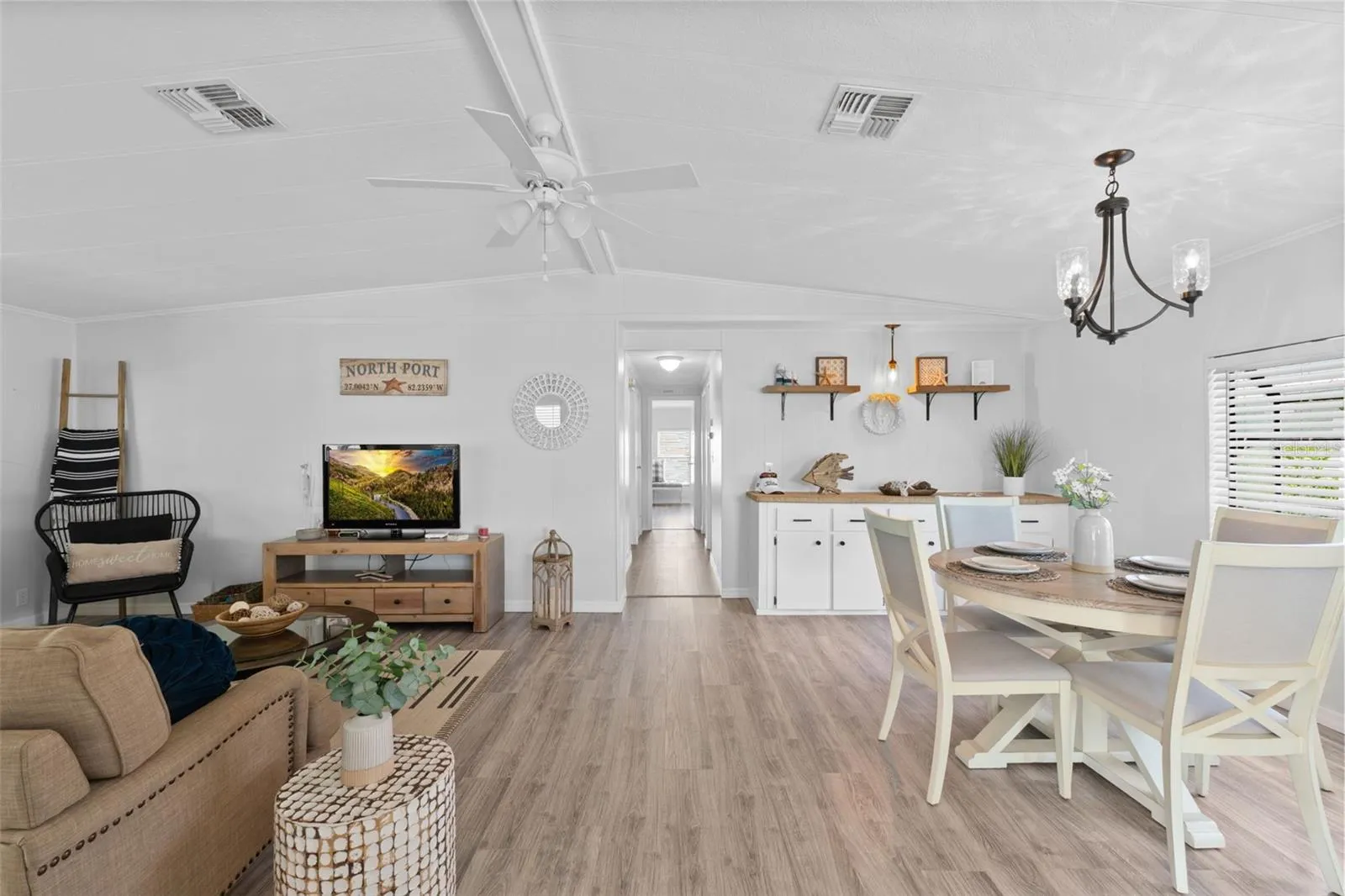 With cathedral ceilings, bright walls, and handsome laminate flooring, this home’s classy, chic interior will accommodate any decor or stylings of your choosing. The spacious master bedroom leads to a well-lit master bath featuring a double-sink counter and glass-door shower. In the kitchen, multiple large windows allow plenty of light to reveal a sleek kitchen island with drawers & eating area, as well as plenty of solid surface counter space and windows near the sink. A bright, open living room/dining area leads out, through sliding doors, to a shaded deck that provides the perfect spot to sit and enjoy beautiful Florida evenings while taking cover from heat and bugs.