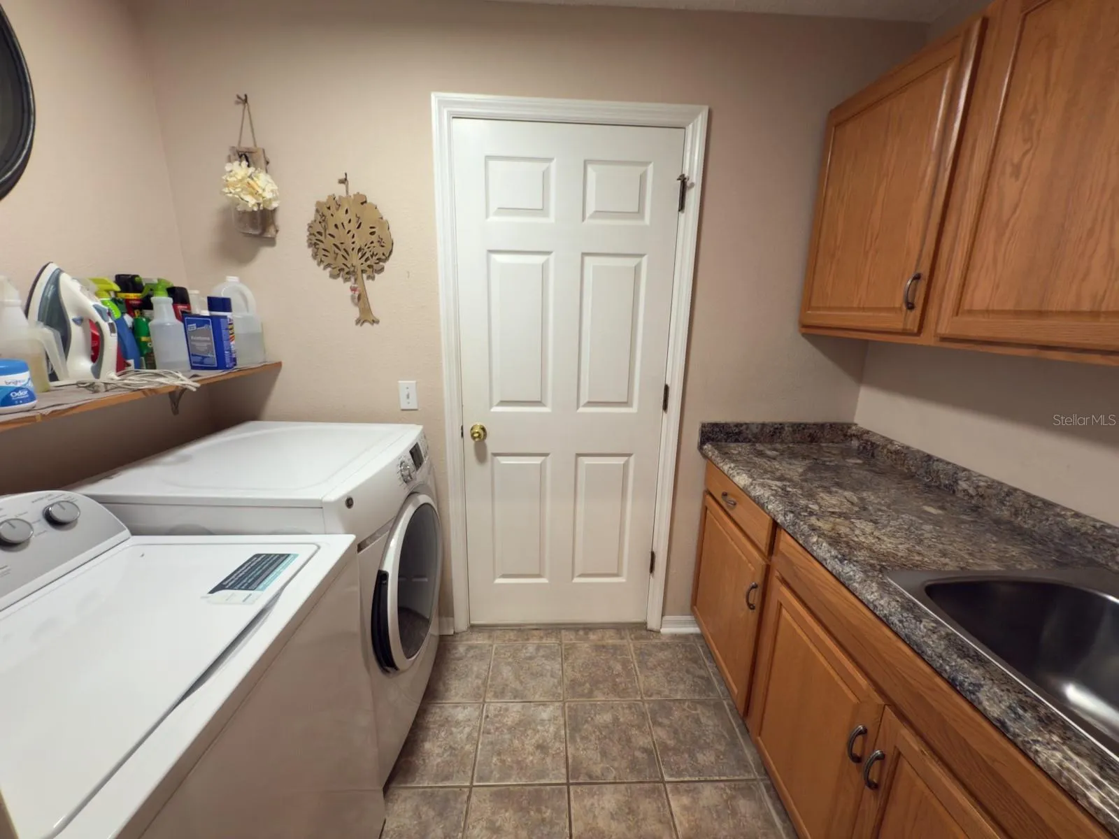 Welcome to your new turnkey villa in the highly sought-after Heritage Pines 55+ Golf Community. This beautifully maintained 2-bedroom, 2-bathroom villa offers a spacious and open split-bedroom floor plan with soaring ceilings that create a spacious feel. The open-concept layout seamlessly connects the family room, living room, and dining area—perfect for both everyday living and entertaining guests. The remodeled kitchen features granite countertops, updated cabinetry, a closet pantry, a breakfast bar, and a cozy dinette area. The primary suite boasts LVP flooring, dual walk-in closets, and a private en-suite bathroom complete with a walk-in shower, large vanity, and built-in makeup desk. The guest bedroom offers newer carpeting and its own spacious walk-in closet. Enjoy the convenience of an indoor laundry room, complete with built-in cabinets, a utility sink, and a washer and dryer included. Step outside to a screened-in patio overlooking a peaceful greenbelt—offering privacy and no rear neighbors. Major updates provide peace of mind, including a brand-new roof (June 2025), new HVAC system (2023), and water heater (2019). The exterior was just freshly painted too. The foundation was professionally remediated and reinforced in 2024 and comes with a transferable lifetime warranty—fully insurable. Offered mostly furnished included (with the option to clear out upon request). Heritage Pines is a gated, amenity-rich community featuring a private 18-hole championship golf course, a heated pool and spa, clubhouse, fitness center, restaurant and bar, and courts for tennis, pickleball, bocce, and much more. HOA fees cover cable, internet, lawn care, irrigation, and exterior painting—making for a low-maintenance lifestyle. Be sure to check out the 3D virtual tour and schedule your private showing today.