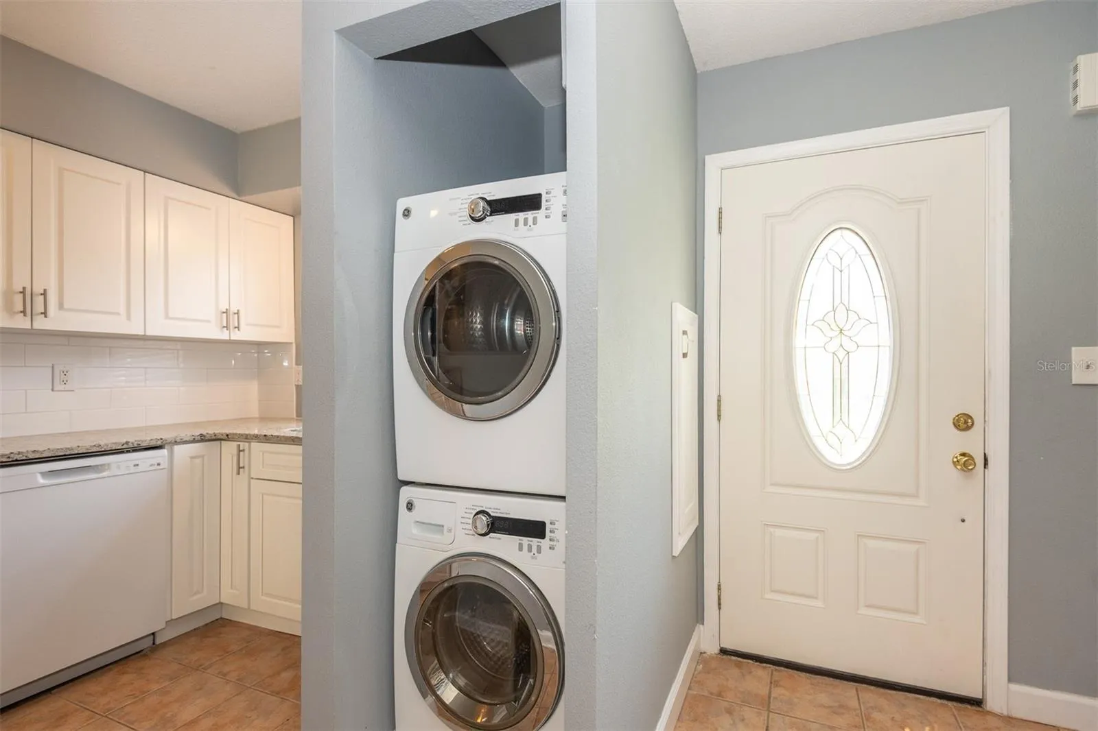 On the main floor, you’ll also find tiled flooring throughout, a brand-new stacked washer/dryer, an updated half bath, and plenty of storage. Upstairs, two inviting bedrooms share an updated full bath, and the primary suite offers its own impact-rated sliding glass door.