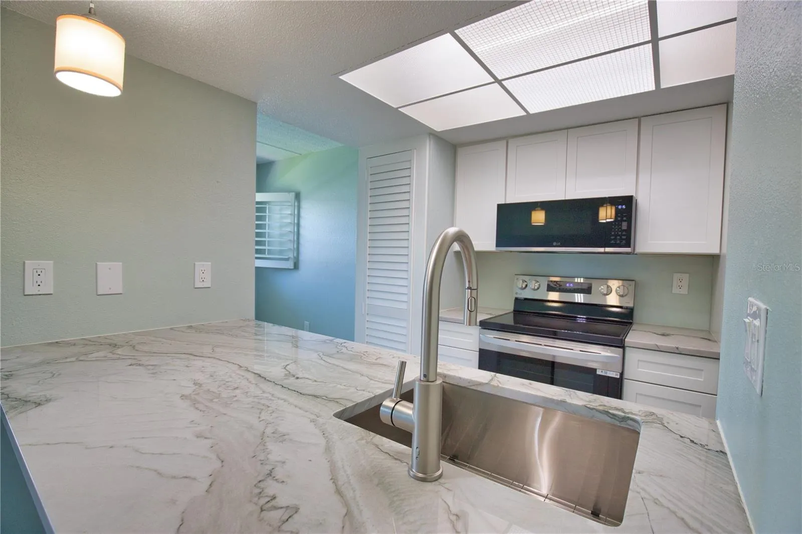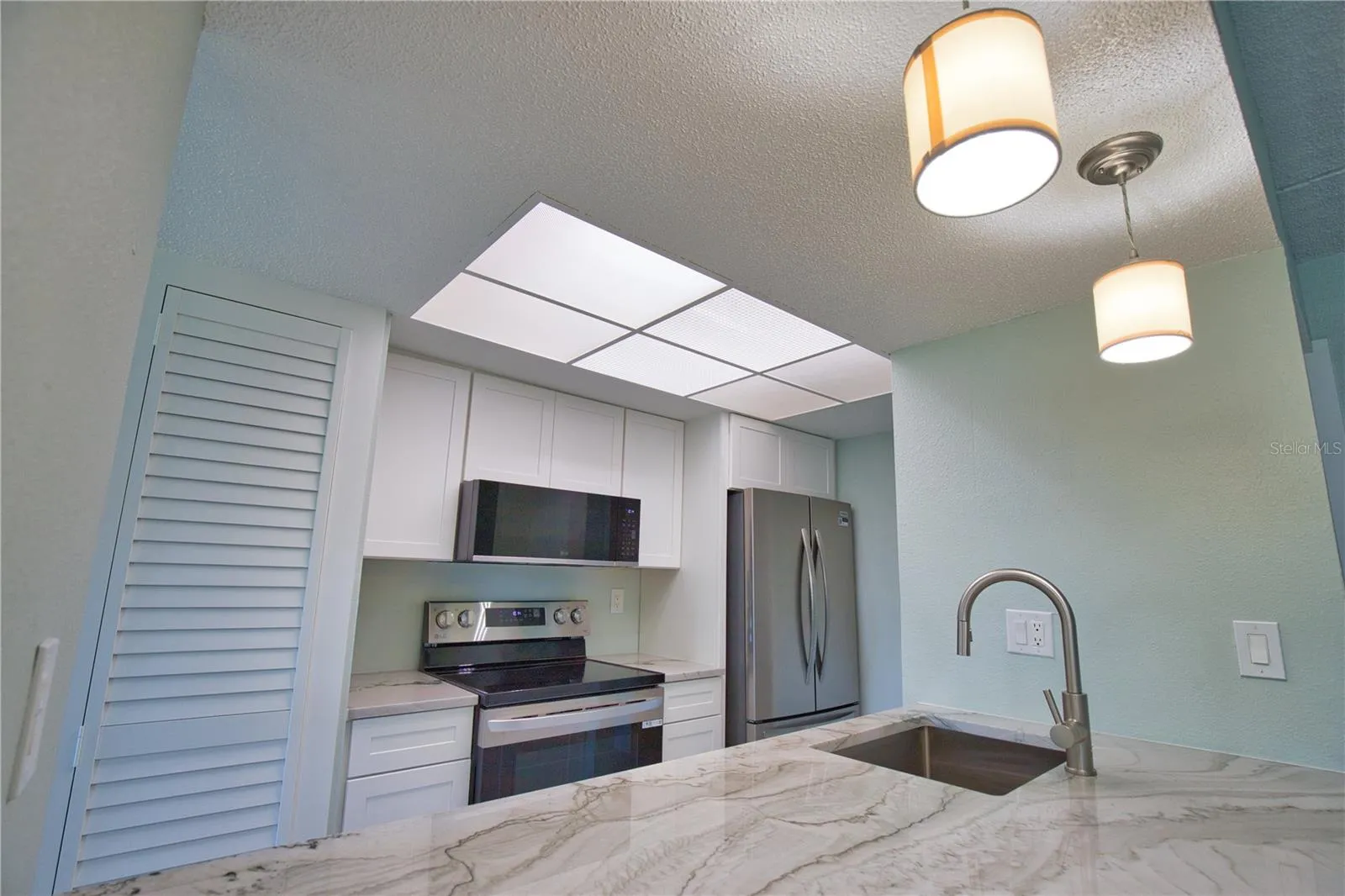 Remarkable first floor condo in the desirable Bahia Vista Community. This well appointed condo has a spacious entry and open concept living area. The kitchen offers open sight lines, granite counters, new cabinetry and brand new stainless steel appliance suite. There is a bar seating area that is roomy enough for four bar stools. Next up is the spacious living room which is the perfect spot to relax on the luxury couch. The huge primary suite offers large bedroom area, walk in closet and attached newly renovated full bath. The entire unit has been updated and freshly painted with neutral coastal colors. The Bahia Vista Community has been consistently voted the best pool and private beech access on the island. The condo is directly across the street from miles of beautiful Gulf of Mexico Beaches. A stones throw to The Crows Nest and Jetty. And a short walk or drive to all the boutique shops and restaurants the Village if Venice has to offer. This unti also can provide you with investment potential. Similar units rent monthly for $2,000 off season and $4,500 in season