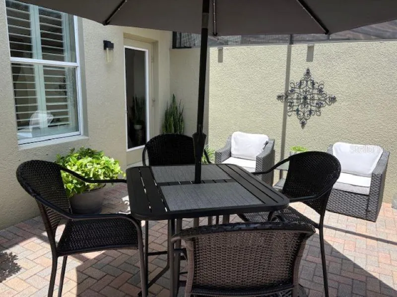 Beautiful Hampton Lakes Townhome with 2 car garage, screened in brick paver patio, on a conservation view lot. Walk to A rated schools, plus almost everything you need, grocery, restaurants, coffee shop, banks, and more. The Seller spared no expense, the property has tons of upgrades, all new luxury vinyl plank floors throughout, plantation shutters, 9 foot ceilings, upgraded AC system, higher end appliances, double pane windows, and storm shutters. The entire inside was recently painted, walls, ceilings, and doors, which make this property move in ready. The monthly HOA fee covers community pool, landscaping, roofs, outside maintenance, exterior painting, and your water. There are no CDD fees, the property is not condo, but fee simple, no flood insurance required, and no damage from previous storms. Hampton Lakes is a beautiful community, and so convenient to everything Tampa Bay has to offer. This property shows pride of ownership.