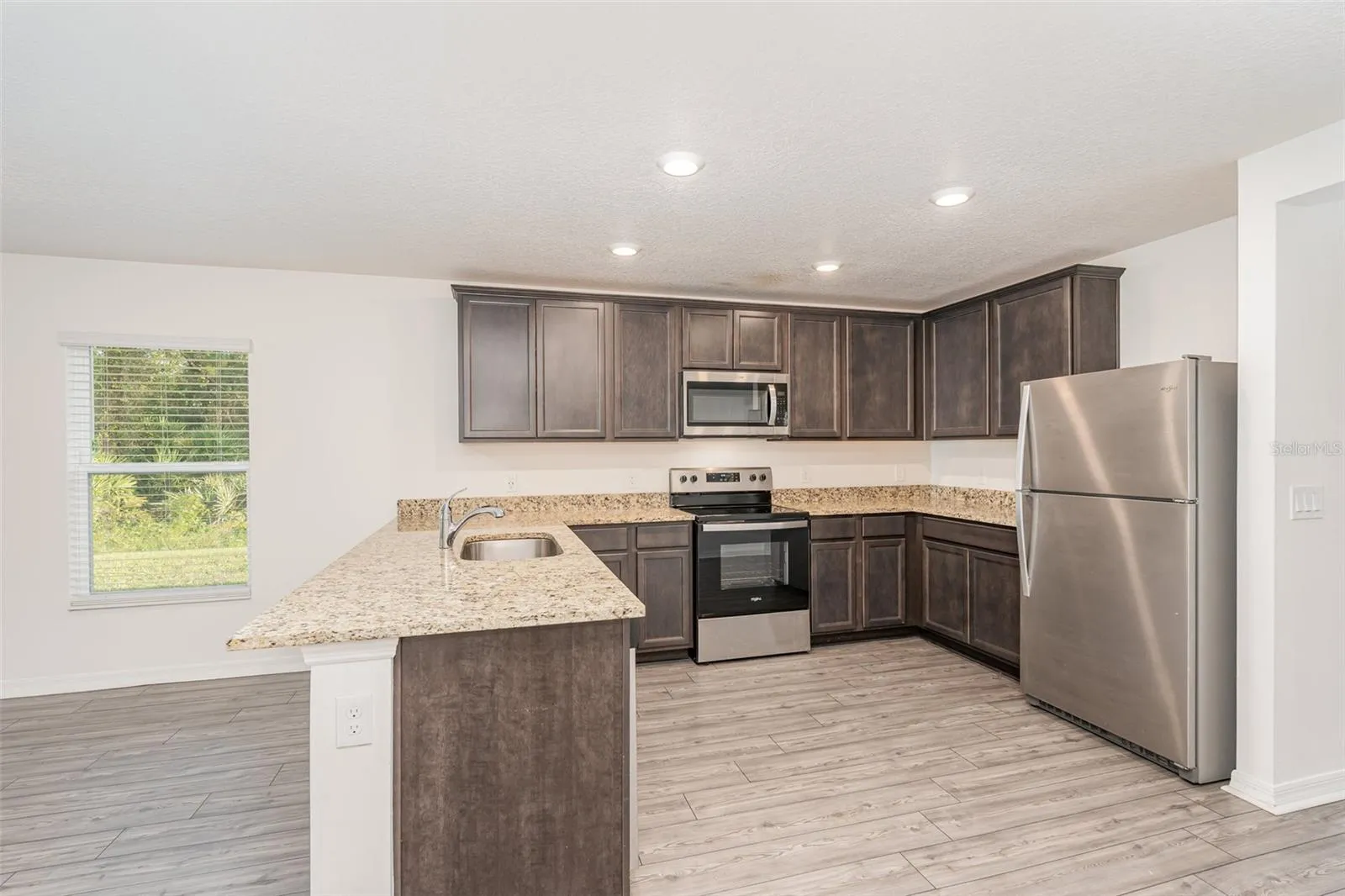 Welcome to this beautifully designed 4-bedroom, 2-bathroom single-story home built in 2023. The open floor plan creates a spacious and inviting living area, ideal for everyday living and entertaining. The kitchen features stainless steel appliances, painted cabinets, and granite countertops for a sleek, modern look. Luxury vinyl plank flooring extends throughout the home, offering both style and durability.