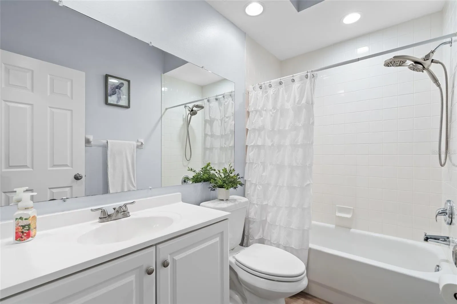 The kitchen features quartz countertops, a wine/coffee bar, and matching Kenmore appliances. Each bedroom has its own full bathroom, and the primary suite includes a walk-in closet. Relax on the screened lanai – the perfect spot to unwind after a long day. It also has a private 1-car garage for your car, bikes, kayaks, and all your beach gear. Modern updates include recessed lighting, quartz countertops (2022), waterproof vinyl flooring (2021), composite decking (2023), a 2.5-ton AC unit (2018), a new roof (2018), and a washer & dryer (2022). Just minutes to Madeira Beach, Redington Beach, John’s Pass, Treasure Island, Seminole City Center, and less than a mile to the Pinellas Trail with a direct bike path to downtown St. Petersburg. HOA includes roof (including garage), exterior painting, water, trash, cable/internet, 24-hour gated security, and pest control – leaving only your electric bill! Enjoy resort-style living with two pools, a heated spa, clubhouse, fitness room, and miles of walking/biking trails. Option to be sold as furnished or unfurnished. Pet-friendly and all ages welcome!