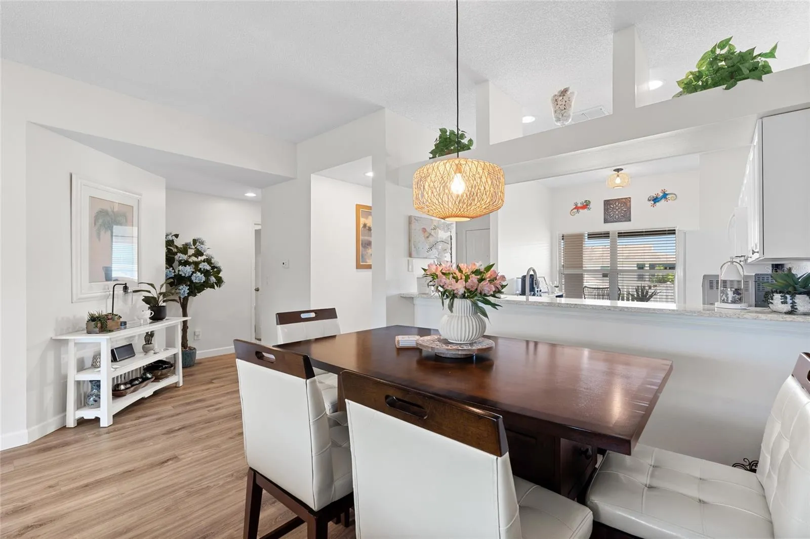 Low-maintenance living or the perfect winter getaway! This updated 2-bedroom, 2-bathroom elevated condo in the gated Shores of Long Bayou has it all. A welcoming front patio leads inside to an open-concept layout with vaulted ceilings connecting the kitchen, and living areas.