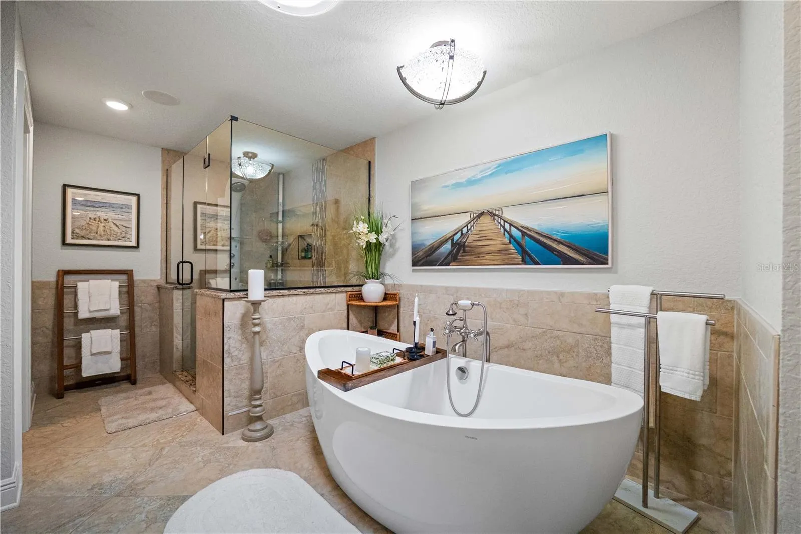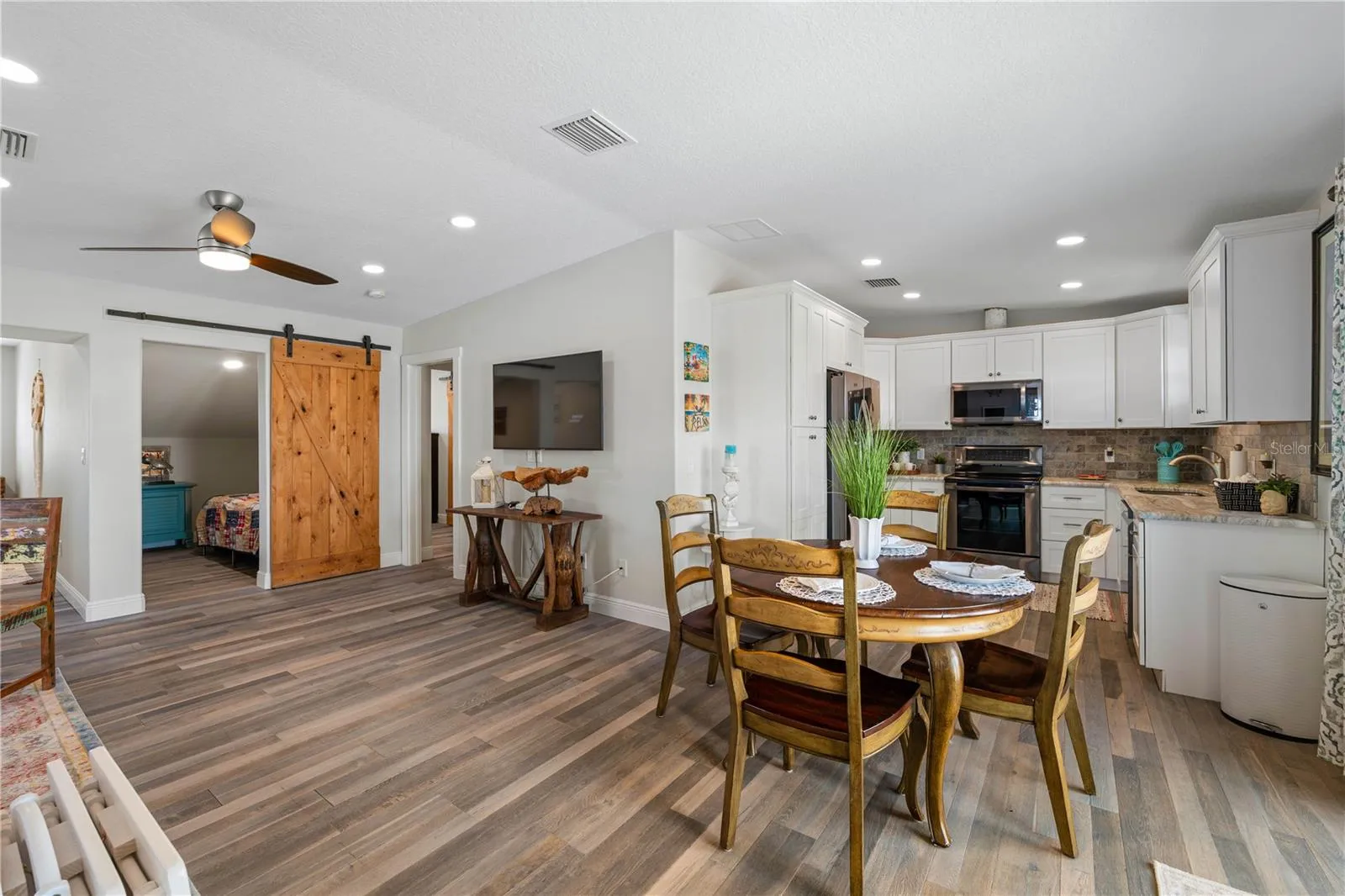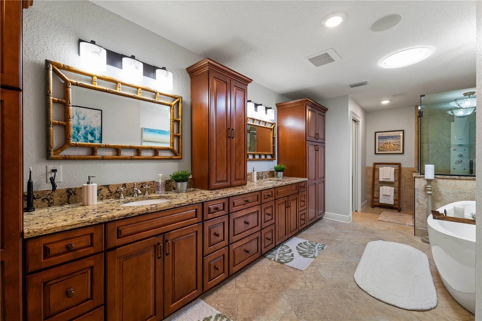 Paradise awaits at this exceptional three-bedroom, two-and-a-half-bath waterfront estate with a detached two-bedroom in-law suite on a double lot in New Port Richey. Resting proudly on 0.43 acres, this 4,018-square-foot home blends luxury, resilience and comfort—having weathered two hurricanes with no damage or flooding. Fully restored in 2017, the main home features a chef’s kitchen with vaulted beamed ceilings, granite counters, stainless steel appliances, double ovens and a spacious pantry. The expansive great room opens to tranquil waterfront views and an entertainer’s lanai. French doors lead to the primary suite, which includes a bonus room (currently used as a gym), a spa-like bath with a soaking tub, dual sinks, and custom California Closets. Outdoors, enjoy the open-air saltwater pool, a tiki hut with power and lighting and a private dock with concrete pilings and a 16,000-pound boat lift. For the car enthusiast or RV owner, the 45-by-38-foot detached garage offers storage for 4–6 cars, RV access, and a second-floor in-law suite with two bedrooms, a full kitchen, a bath and a private balcony with water views. Additional features include a two-car attached garage, solar water heater, 20 owned solar panels, plantation shutters and lush landscaping. This is luxury waterfront living—designed for boaters, RVers, and anyone who craves space, style and security.