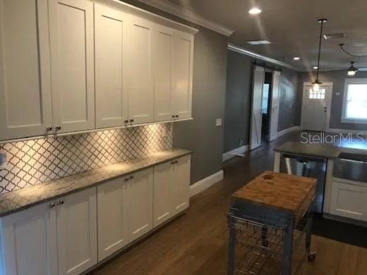 South Seminole Heights bungalow with old school charm and modern day conveniences. This 3 bedroom, 2 bathroom, 1566 square foot home is located right where you want to be in The Heights, Walking distance to Independent, Cappys Pizza, Blind Tiger, Faedo’s Bakery, Spaddy’s Coffee Co., and more. Walk up to an oversized, covered front porch ideal for a relaxing morning or winding down in the evening. Once you open the front door you will first notice the volume ceilings and an impressive, spacious open concept living area that flows right into your dining room and stunning kitchen, all featuring water-resistant Engineered Bamboo Laminate throughout. Walk through the large barn doors to find 2 bedrooms with large closets and 1 bathroom with Basketweave Mosaic flooring and Subway tile in the shower. If you enjoy cooking then you’ll love this kitchen. Equipped with gorgeous Whirlpool stainless steel appliances, oversized stainless steel farm house sink, beautiful ceramic tile back splash, granite counters with plenty of counter space and separate coffee or wine bar. Off the kitchen, in the back of the house, you will find your large master bedroom complete with a walk in closet and en suite master bathroom with his and hers sinks and a large, glass enclosed shower. Open the french doors to walk out to your attached deck in your fenced in yard perfect for grilling and entertaining friends and family. Don’t wait on this heights bungalow with stunning upgrades and ideal location!