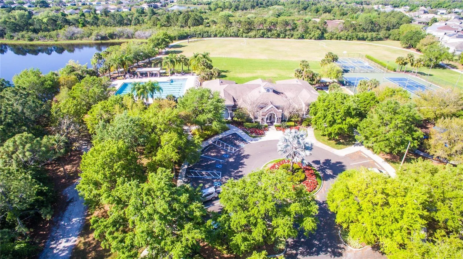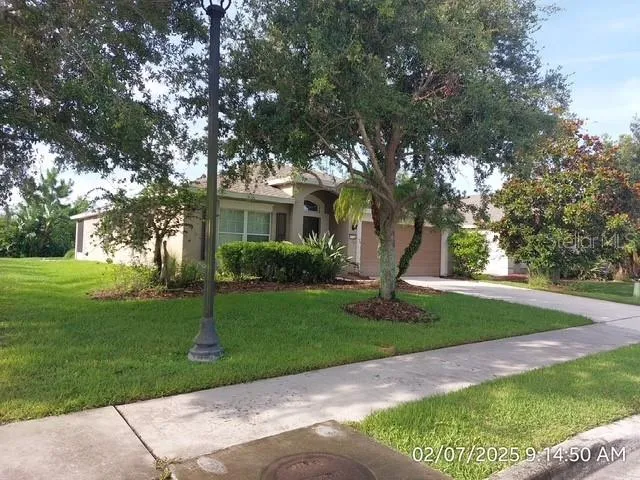Beautiful home in HARRISON RANCH an awesome active community. This charming home features a split 3bedroom 2 bath design with a spacious master suite that overlooks serene conservation property. Enjoy breathtaking views of wildlife from the screened lanai, creating a peaceful retreat. The home features volume ceilings with ceiling fans, a separate living/dining room, and wood cabinets with solid surface countertops. Tile floors are found in the wet areas for easy maintenance. The kitchen, breakfast area, and family room are all open, creating a spacious, welcoming atmosphere. Additionally, the garage door opener comes with an exterior keypad for added convenience. Enjoy fully serviced landscaping, which is included for your convenience. The beautiful clubhouse features a Jr. Olympic-size swimming pool, perfect for relaxation or exercise. The community offers a 24/7 exercise room, a game room featuring a pool table, and a full-time activities director. Enjoy 5.5 miles of walking trails, tennis courts, pickleball, a playground, soccer fields, and much more! Rent includes pesticide treatment and lawn service, excluding maintenance of landscape beds. Minutes away from Ellenton Premium Outlets, restaurants, Woody’s River Roo on the river, beaches, close to I75 and approximately 1/2 hour to Sarasota Airport and Tampa International Airport. COME LIVE AND PLAY HERE.