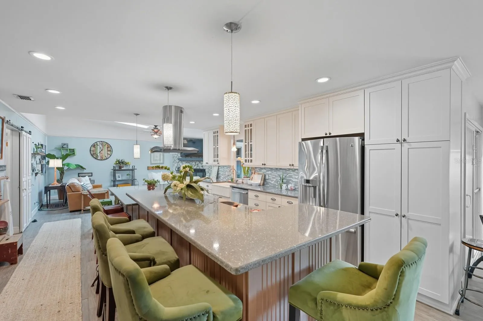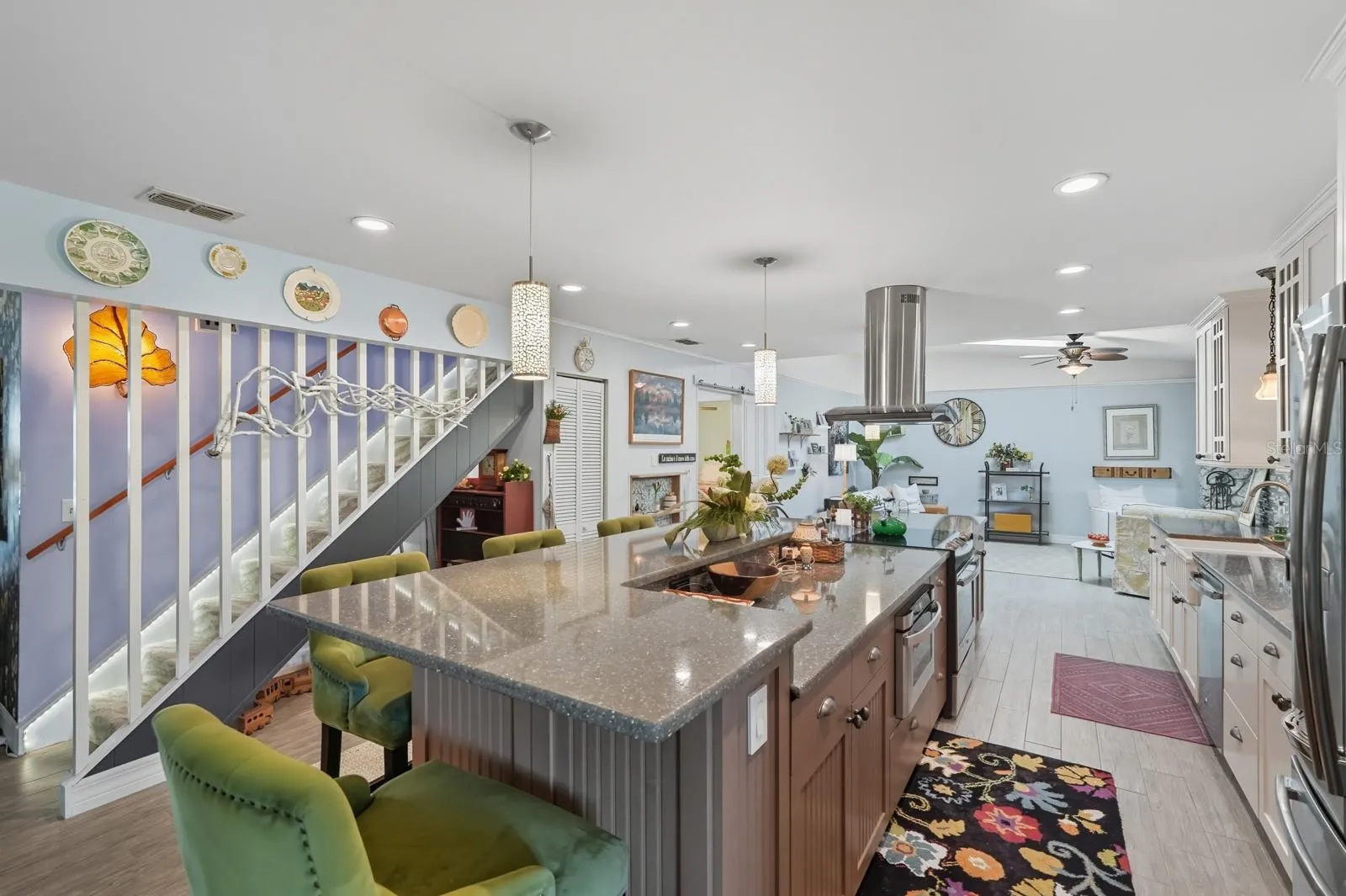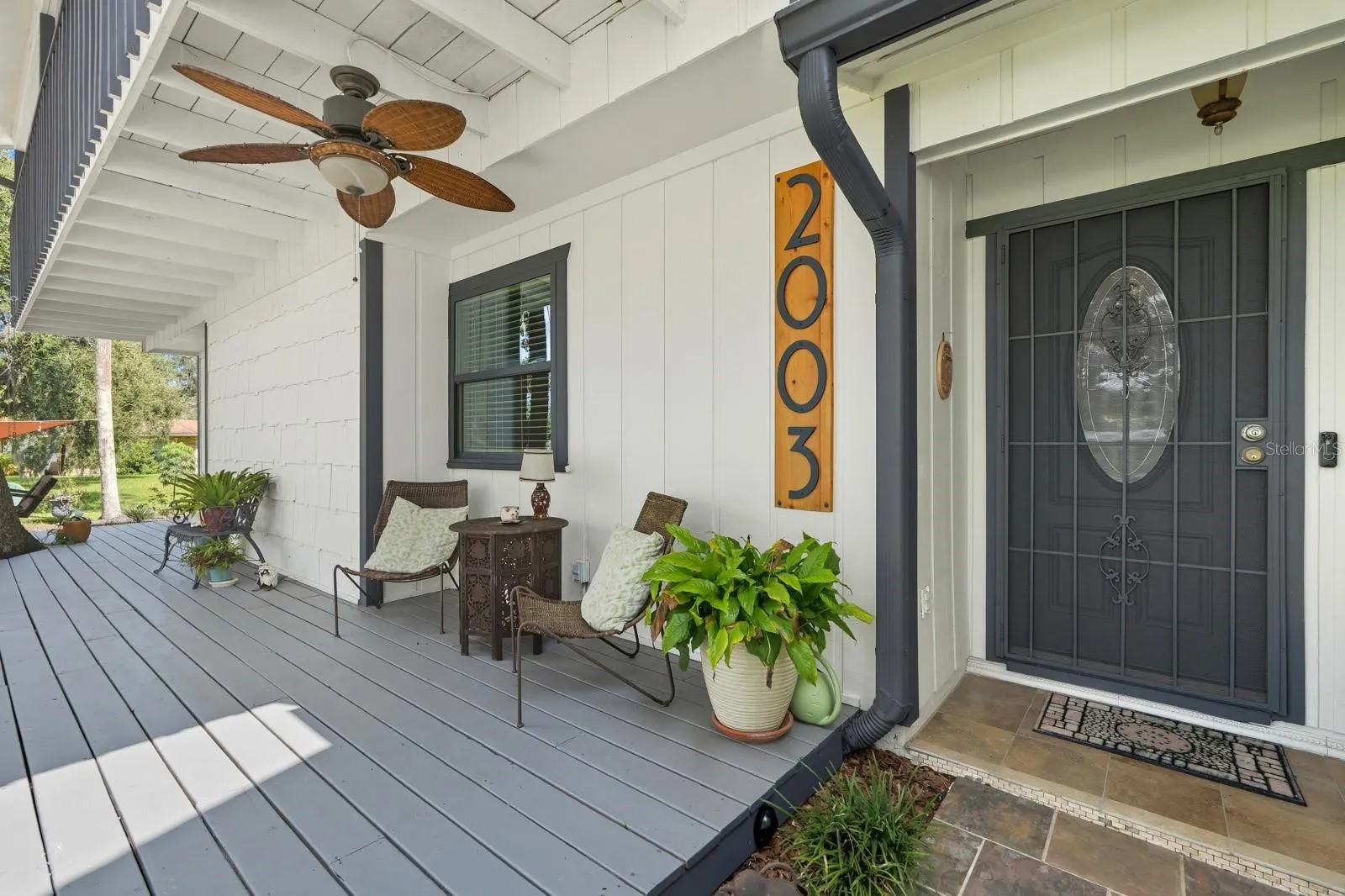 MOTIVATED SELLER- OFFERING 10K IN CONCESSIONS AT CLOSING! Welcome to this unique 2-story ranch in Florida Shores! This spacious home features an open-concept layout, beautifully updated eat-in kitchen with bar seating, and a stone wood-burning fireplace as the centerpiece of the living area. The upstairs retreat offers a large bedroom, full bath, and private balcony—perfect for guests or a peaceful getaway. With two separate garages, there’s plenty of room for vehicles, storage, or hobbies. Ceramic tile flooring runs throughout, and the enclosed backyard patio is ideal for relaxing or entertaining. Enjoy peace of mind with a newer roof. A rare find in the area, this well-designed home is move-in ready and waiting for you!