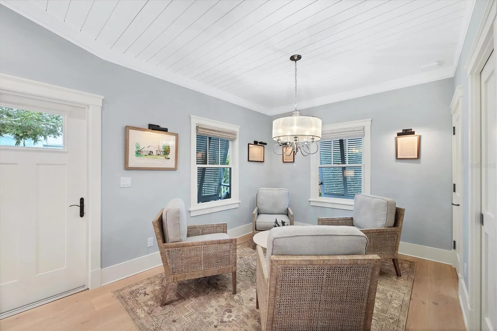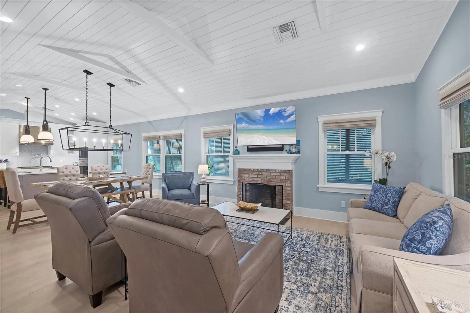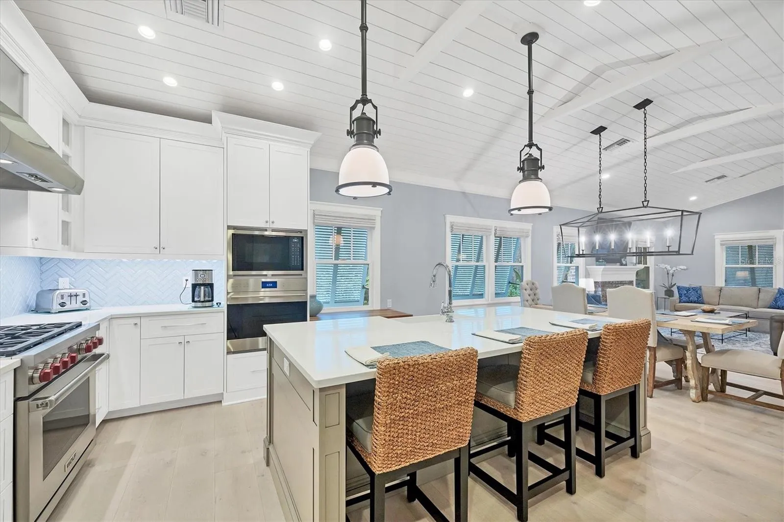 Historic 3 bedroom, 3 ½ bath completely renovated home with garage, located just steps away from shopping, restaurants and the beach! In 2019, this historic and contributing Boca Grande cottage underwent a full renovation and addition which included an interior staircase and second living floor with a third bedroom suite and bathroom as well as a full-size garage with space for a car and golf cart. All work was completed by Safety Harbor Builders boasting incredible custom carpentry including cabinets, built-ins, closets, crown molding, 8-inch baseboards, solid wood custom doors and beautifully crafted ceilings. Wide plank white oak wood flooring runs throughout main living areas, kitchen and all bedrooms. A chef’s dream kitchen includes a 6 burner Wolf range with pot filler, plus an additional Wolf wall oven, Wolf built-in microwave / convection oven, Bosch dishwasher and Sub-Zero refrigerator. Other features include a large island with a farmhouse sink, Quartz countertops, and a built-in wall pantry with easy access drawers. Three bedrooms, all with private full baths include custom glass enclosures, and showers detailed with Carrara marble and / or hammered subway tiles, one with a cast iron tub. For guests, there is a powder room off the living area. The laundry room includes a second custom pantry for additional storage and Whirlpool washer and dryer. Finished with all impact rated windows and doors plus with a new metal roof in 2025, with a new tankless water heater and all appliances in 2025. The propane tank provides for the range, tankless water heater and fireplace. The house is also generator ready. Lush landscaping, irrigation and lighting are all installed for privacy and beauty. Use the welcoming front porch to enjoy and gather with friends and family in a truly historic custom architecturally designed Boca Grande cottage built to today’s standards!