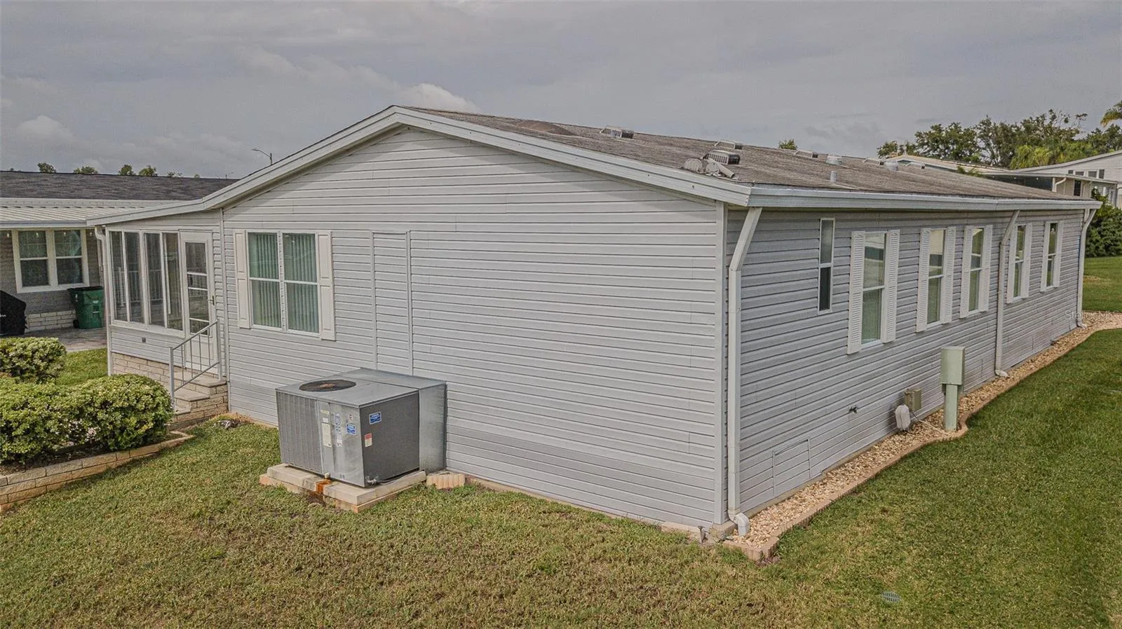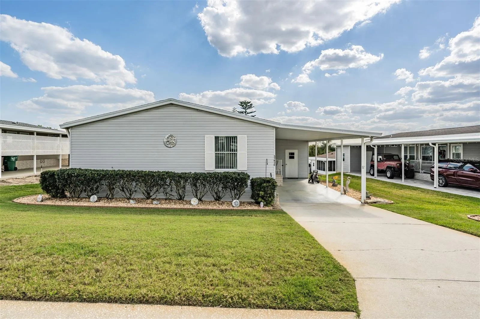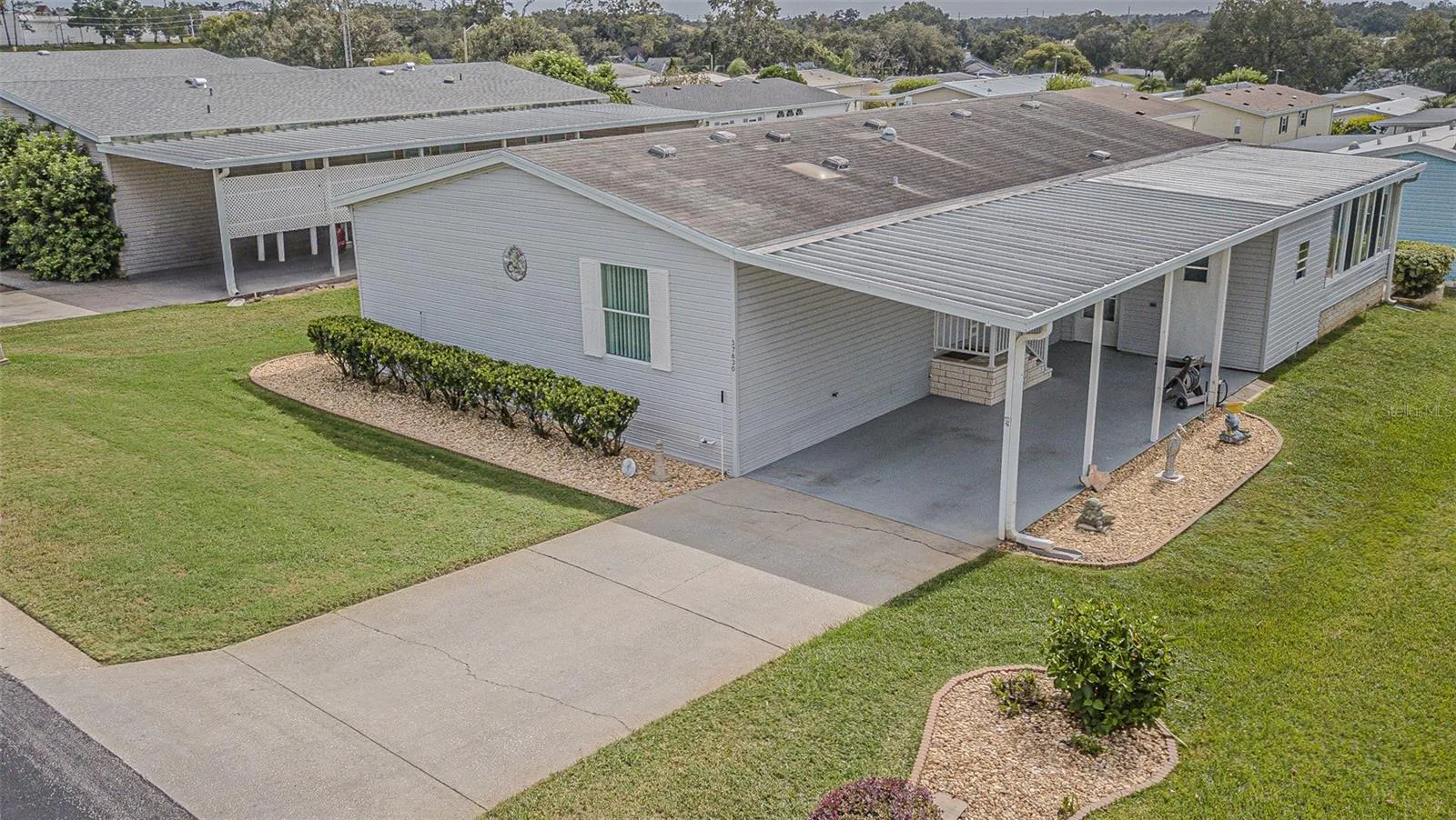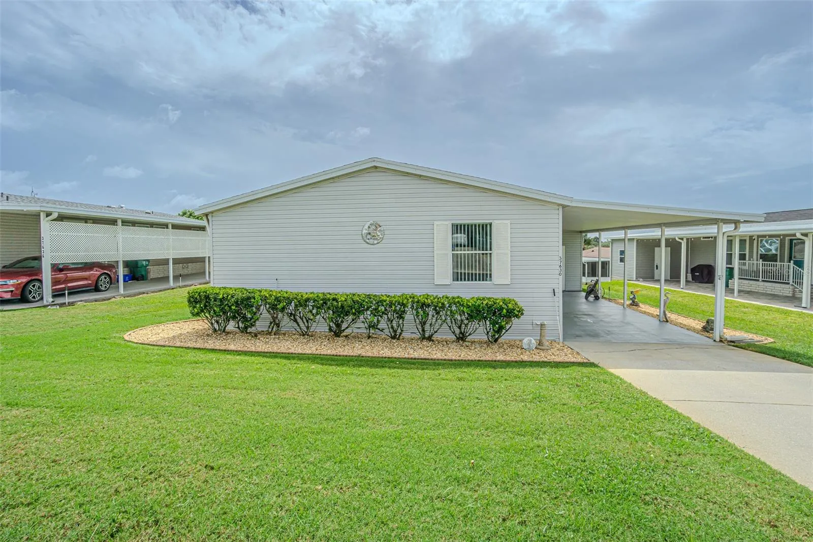 SPECTACULAR SUNSETS from your Updated and MOVE in READY home in the 55+ GATED Community of Grand Horizons! OWN your LAND in this Meticulously maintained Jacobson Home with over $40,000 in Upgraded features! Storm door Welcomes you onto neutral Luxury Vinyl Floors ($8,000) added throughout with Ceramic Tile in the wet areas. Lush Landscaping adds to the Curb Appeal, with accent rocks and lawn art, along with most Exterior Vinyl siding replaced ($10,350) and Anchor Straps installed underneath. Newly painted neutral interior is a blank slate for your decorating. OPEN Floor plan with Living/Dining areas and Vaulted ceiling makes entertaining easy! Galley kitchen boasts white cabinets with Crown molding, Newer 2023 Refrigerator, 2020 other appliances, eat in breakfast nook with sliding doors to Enclosed Florida Room with new flooring and slider windows to extend your living and entertaining space. Owners retreat has been remodeled ($9,500) with a Marble look SHOWER with grab bars, dual sinks, new marble look counters, new mirrors, new lighting, raised commode and huge closet. Split bedroom plan with Primary bedroom with vaulted ceiling located at the rear of the home with huge closet and bath ensuite. Secondary bedrooms have luxury vinyl floors and are located at the front of the home with one set up as a guest bedroom and 3rd bedroom set up as a light, bright office with windows overlooking front lawn. Hall bathroom has skylight, raised commode, new mirror, lighting and vanity. Attached shed is off the 2 car carport and offers storage and area for a workshop. interior laundry closet houses the 2020 Washer & Dryer. Roof is 2010 and AC is 2020 with transferable 5 year AC Service contract. YOU WILL LOVE Living in this community in Zephyrhills where you OWN the LAND and the Residents own their amenities! Clubhouse with Commercial Kitchen for Pot luck dinners, Breakfasts, Billiards, Craft/Sewing/Quilting room, Library with games and puzzles, Onsite entertainment and Travel excursions. Low HOA and no CDD fees with a GREAT LOCATION within 1 mile of Restaurants, Shopping, Theater, Bowling, YMCA, Medical Facilities and Hospitals and easy access to major roads and highways to Orlando, Wesley Chapel, Ocala, Tampa, Lakeland, Airports and the Beaches! CALL TODAY!