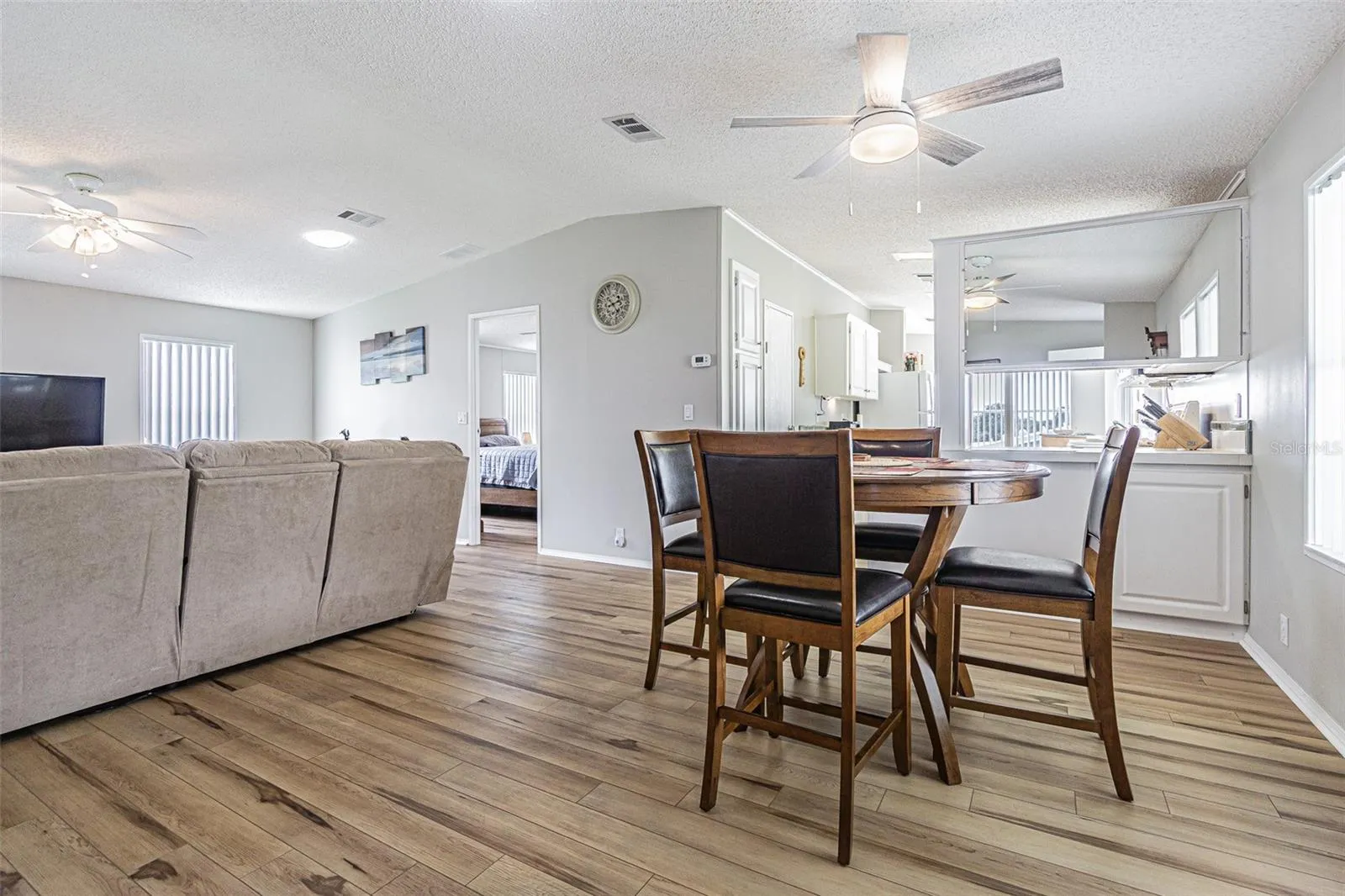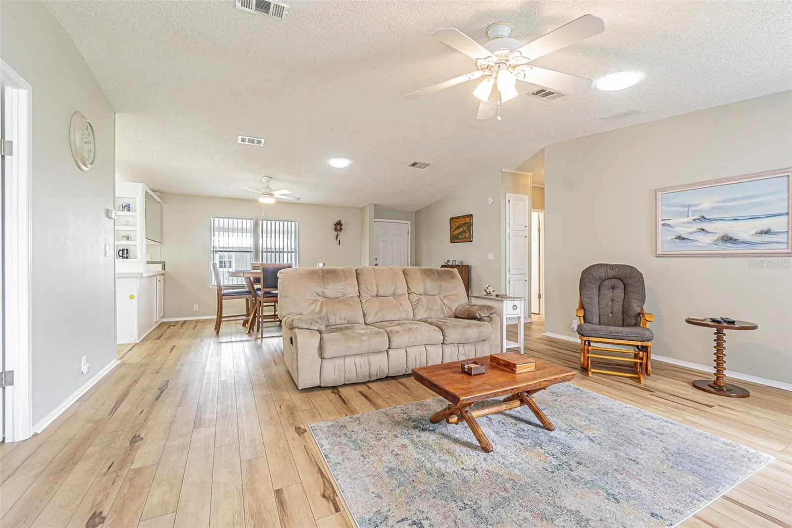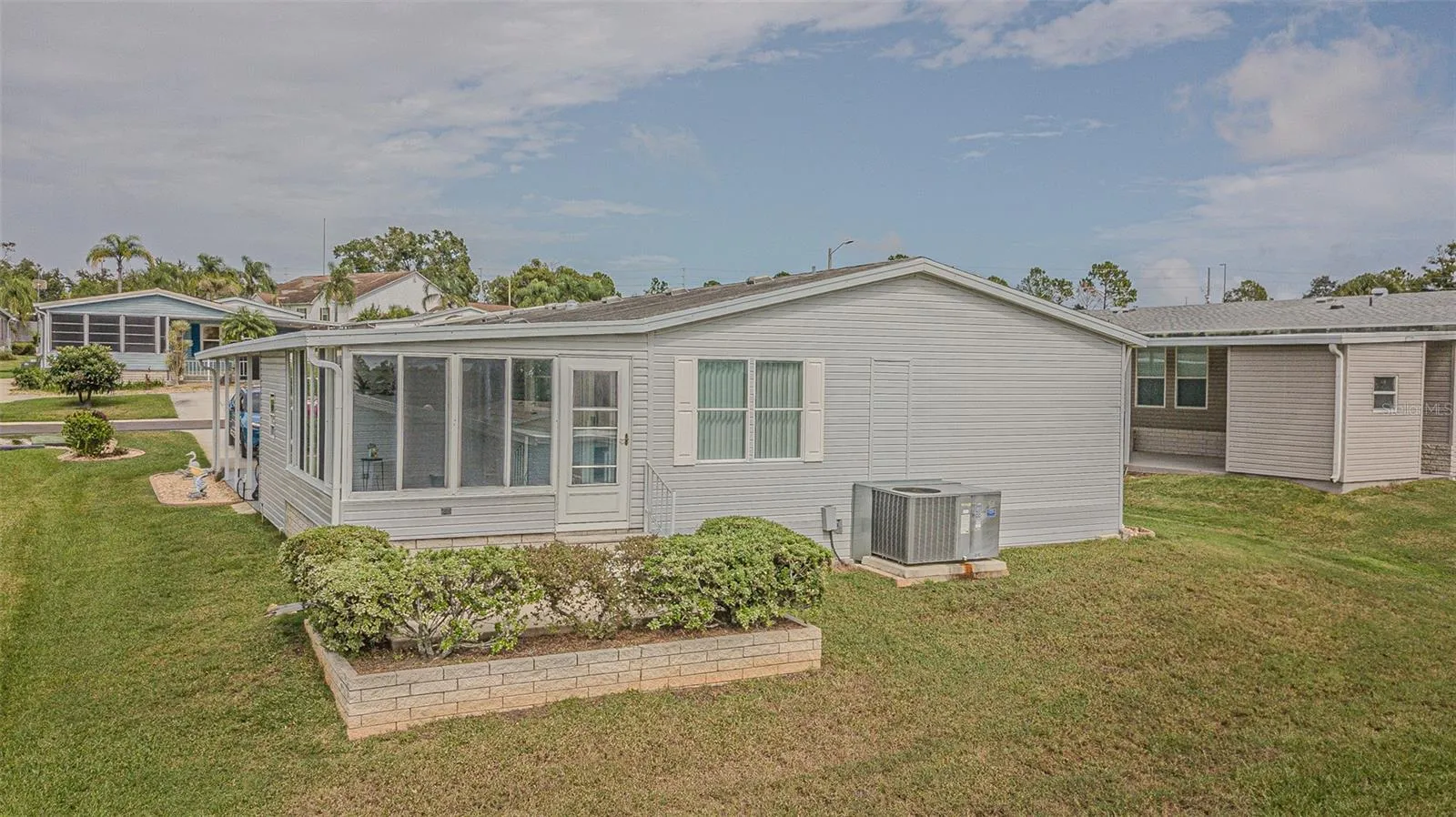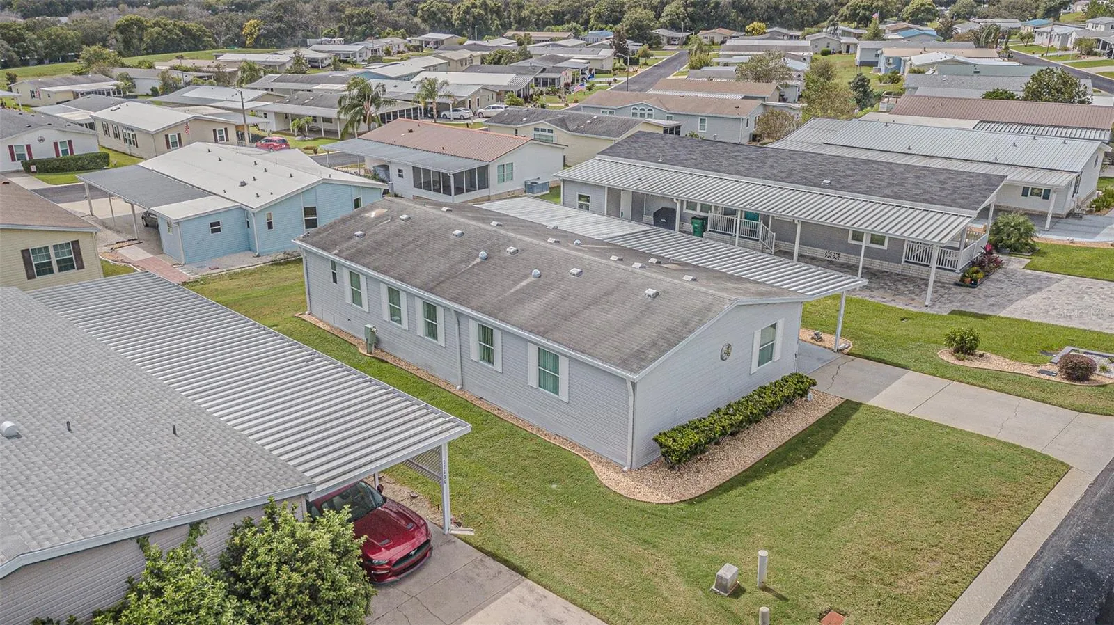 SPECTACULAR SUNSETS from your Updated and MOVE in READY home in the 55+ GATED Community of Grand Horizons! OWN your LAND in this Meticulously maintained Jacobson Home with over $40,000 in Upgraded features! Storm door Welcomes you onto neutral Luxury Vinyl Floors ($8,000) added throughout with Ceramic Tile in the wet areas. Lush Landscaping adds to the Curb Appeal, with accent rocks and lawn art, along with most Exterior Vinyl siding replaced ($10,350) and Anchor Straps installed underneath. Newly painted neutral interior is a blank slate for your decorating. OPEN Floor plan with Living/Dining areas and Vaulted ceiling makes entertaining easy! Galley kitchen boasts white cabinets with Crown molding, Newer 2023 Refrigerator, 2020 other appliances, eat in breakfast nook with sliding doors to Enclosed Florida Room with new flooring and slider windows to extend your living and entertaining space. Owners retreat has been remodeled ($9,500) with a Marble look SHOWER with grab bars, dual sinks, new marble look counters, new mirrors, new lighting, raised commode and huge closet. Split bedroom plan with Primary bedroom with vaulted ceiling located at the rear of the home with huge closet and bath ensuite. Secondary bedrooms have luxury vinyl floors and are located at the front of the home with one set up as a guest bedroom and 3rd bedroom set up as a light, bright office with windows overlooking front lawn. Hall bathroom has skylight, raised commode, new mirror, lighting and vanity. Attached shed is off the 2 car carport and offers storage and area for a workshop. interior laundry closet houses the 2020 Washer & Dryer. Roof is 2010 and AC is 2020 with transferable 5 year AC Service contract. YOU WILL LOVE Living in this community in Zephyrhills where you OWN the LAND and the Residents own their amenities! Clubhouse with Commercial Kitchen for Pot luck dinners, Breakfasts, Billiards, Craft/Sewing/Quilting room, Library with games and puzzles, Onsite entertainment and Travel excursions. Low HOA and no CDD fees with a GREAT LOCATION within 1 mile of Restaurants, Shopping, Theater, Bowling, YMCA, Medical Facilities and Hospitals and easy access to major roads and highways to Orlando, Wesley Chapel, Ocala, Tampa, Lakeland, Airports and the Beaches! CALL TODAY!