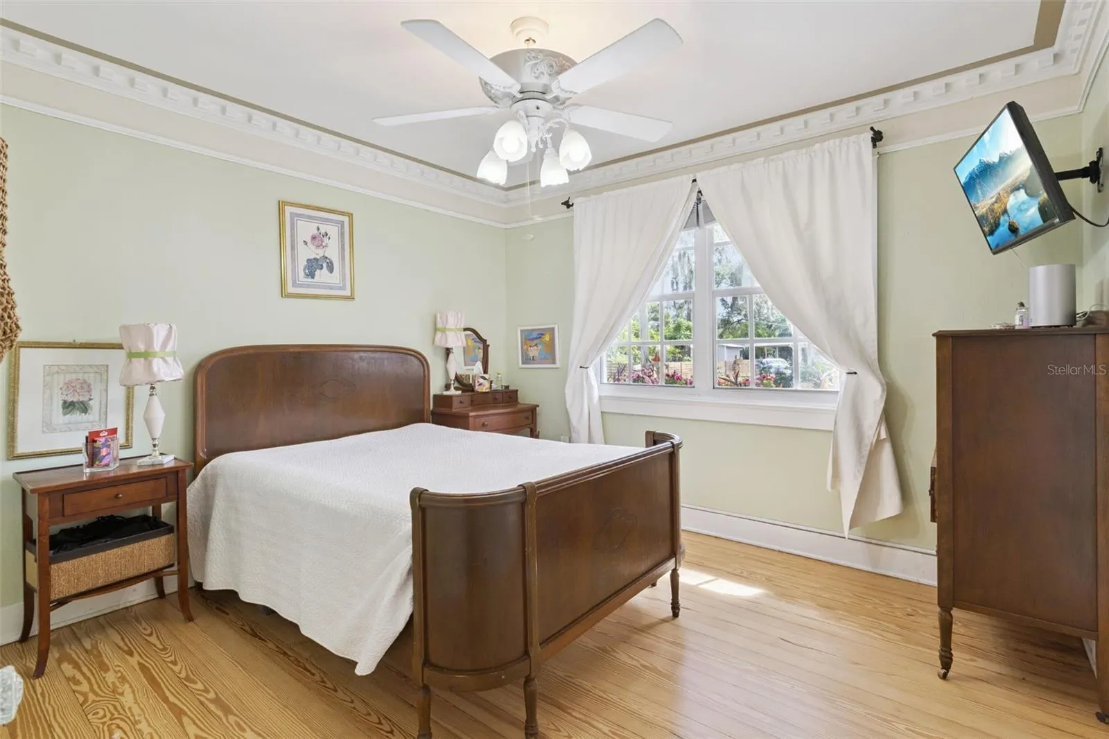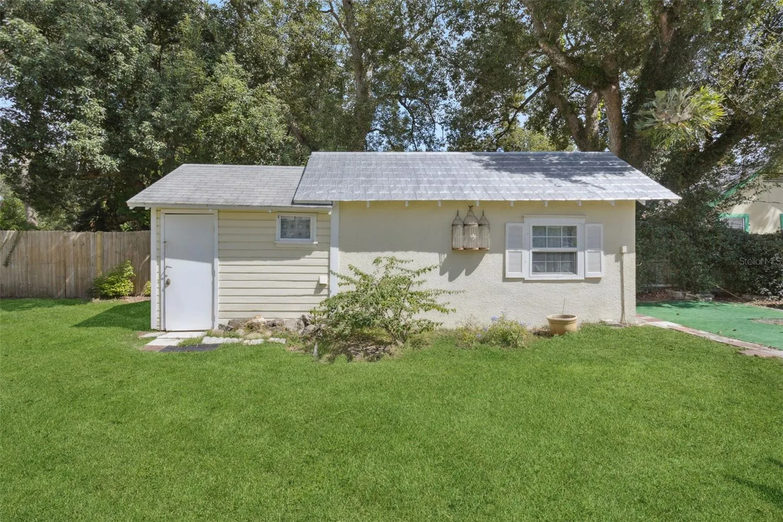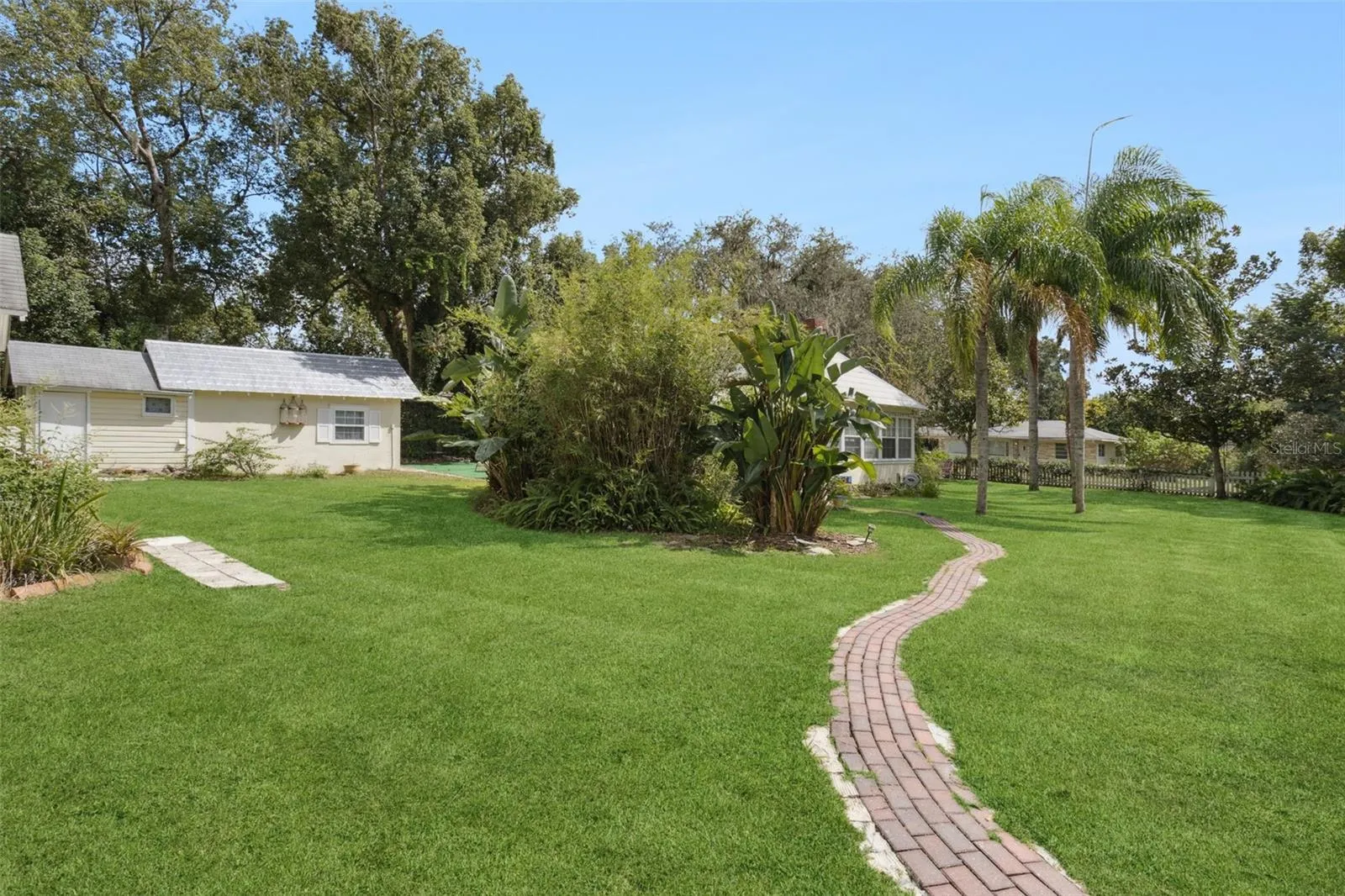 Located within seven blocks of Mount Dora’s quaint downtown and nestled on the eastern shore of Lake Dora—part of the Harris Chain of Lakes—this beautifully updated historic property offers both charm and versatility. The main home features two bedrooms, one bath, formal living and dining rooms, a spacious kitchen with a cozy eating area, indoor laundry, and a den that could serve as a third bedroom or office. A welcoming front porch with a classic porch swing and an expansive back deck provide perfect spots to relax and entertain. A brick pathway leads through the lush gardens to a delightful one-bedroom, one-bath cottage complete with kitchenette—ideal for guests, extended family, or rental income. Set on nearly one-third acre and enclosed by a picturesque white picket fence, this property blends vintage Mount Dora character with modern updates and timeless appeal.