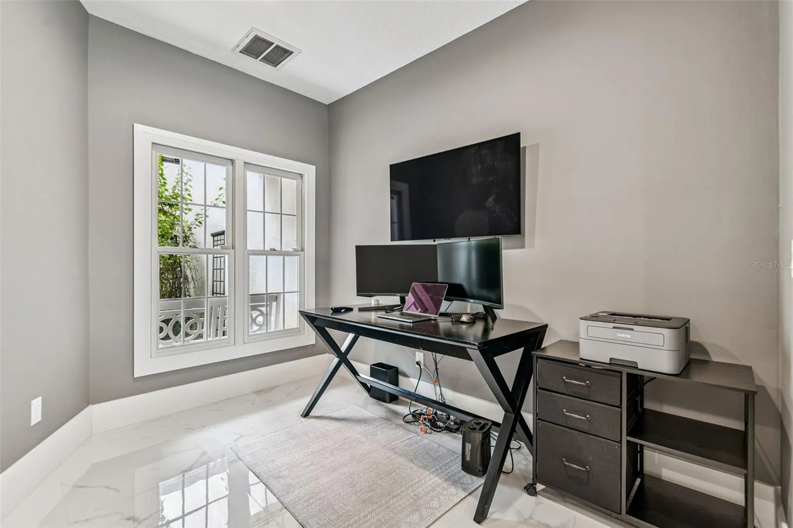 Upstairs, you’ll find rich hardwood flooring throughout, an expansive master suite complete with a private balcony and a generous walk-in closet. A versatile loft area makes an ideal home office or reading nook, while a spacious third bedroom also features an oversized walk-in closet. The laundry room is conveniently located upstairs as well.